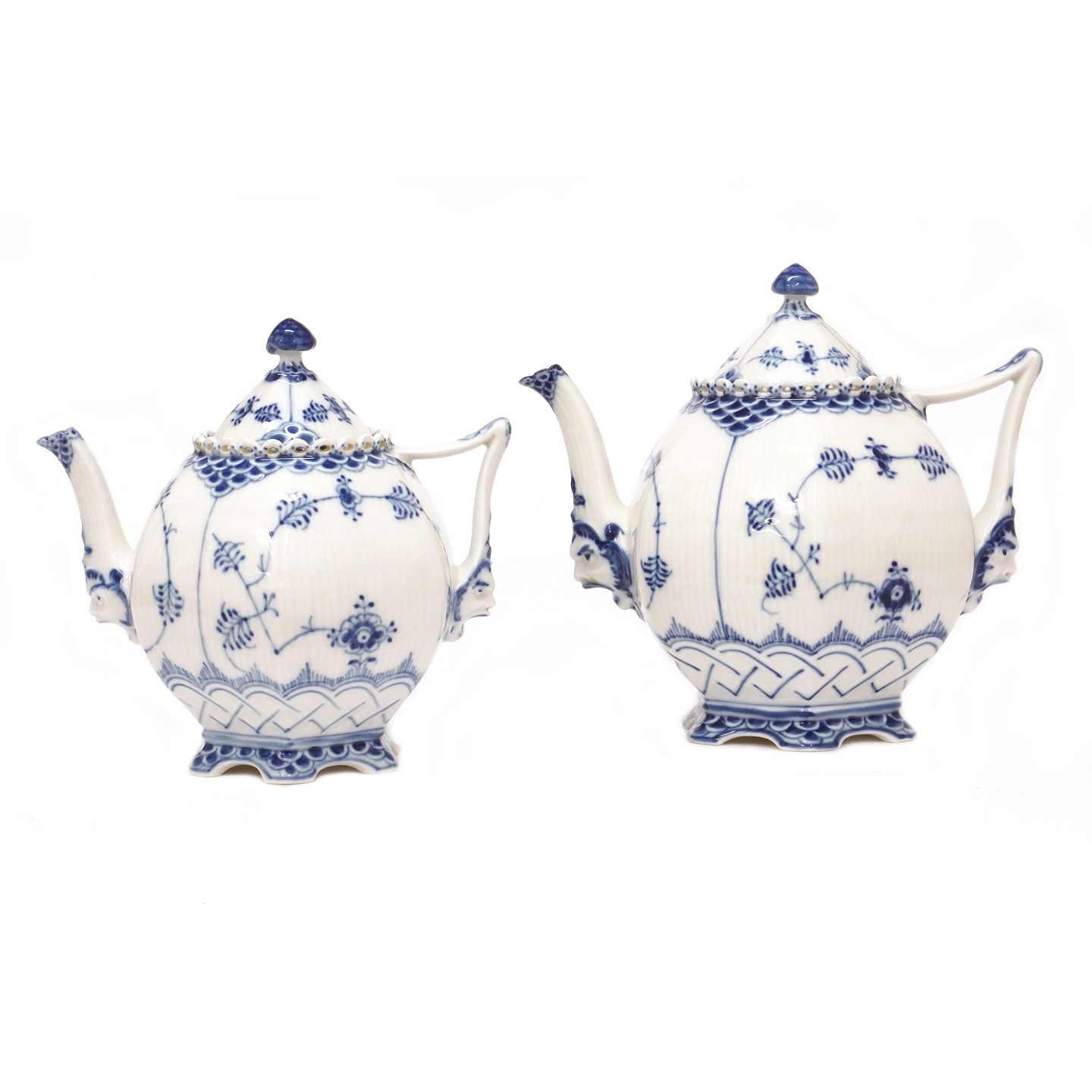 Royal Copenhagen blue fluted full lace tea pots 1118 & 1119cm H: 17 & 19cm Item number: 1118 & 1119