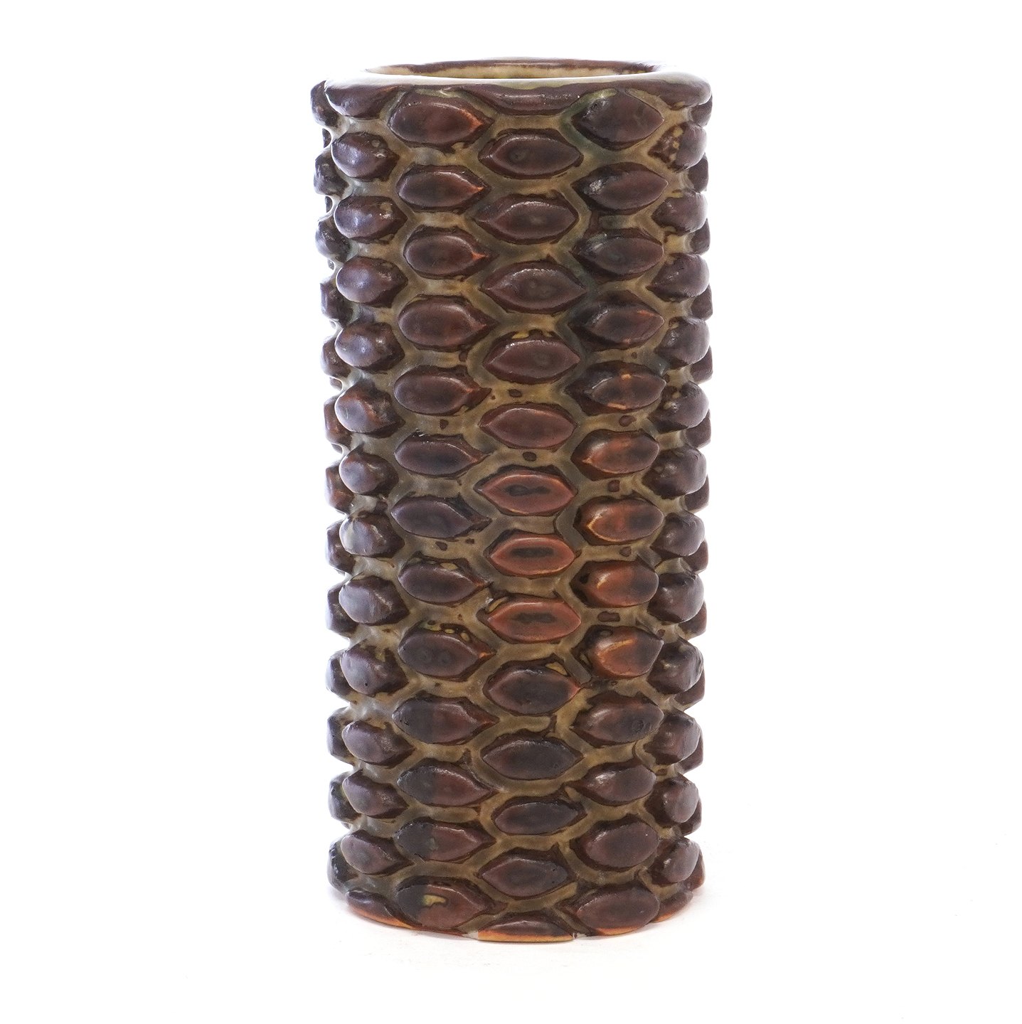 Axel Salto, 1889-1961, tidlig cylindrisk vase udført i stentøj i knoppet stil med usædvanligt dybe rhombeformede knopper