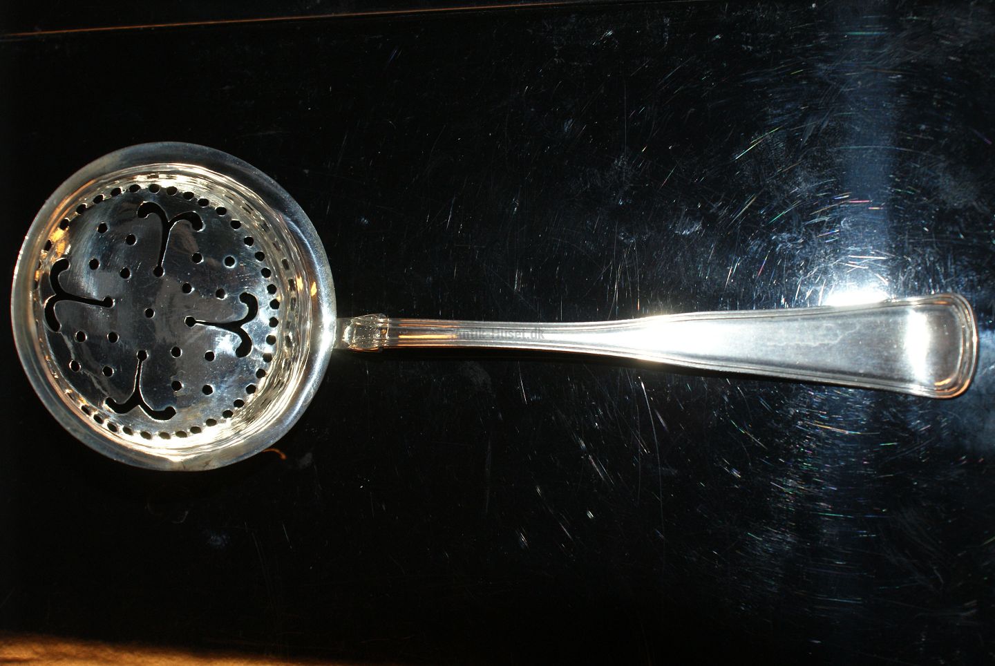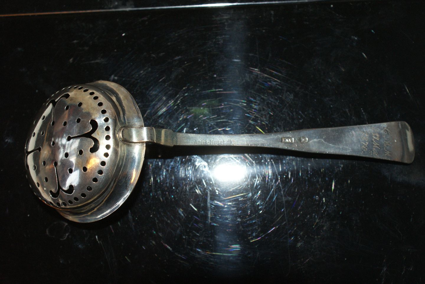 Dobbeltriflet silver Sprinkle spoon w / Initials "1857" Length 18.5 cm. well maintained condition All polished cutlery and packing in the bag