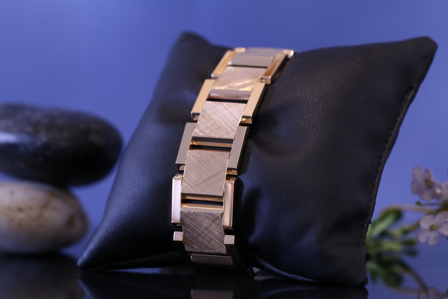 Beautiful Block gold bracelet with 3 rows and embossing in the middle row. The middle row of the bracelet is very wide and with embossing. This gives the bracelet a great contrast and dynamics. Therefore, the bracelet is a very beautiful piece of jewelry that can be used especially on festive occasions in combination with a nice shirt or dress.