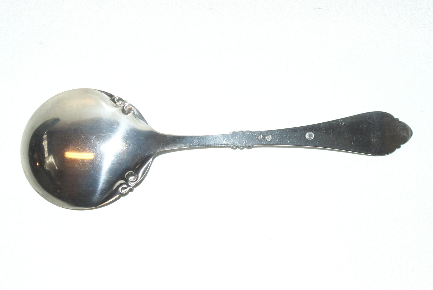 Jam spoon Freja sølv Length 14.5 cm. Beautiful and well maintained The cutlery is polluted and packed in a bag.