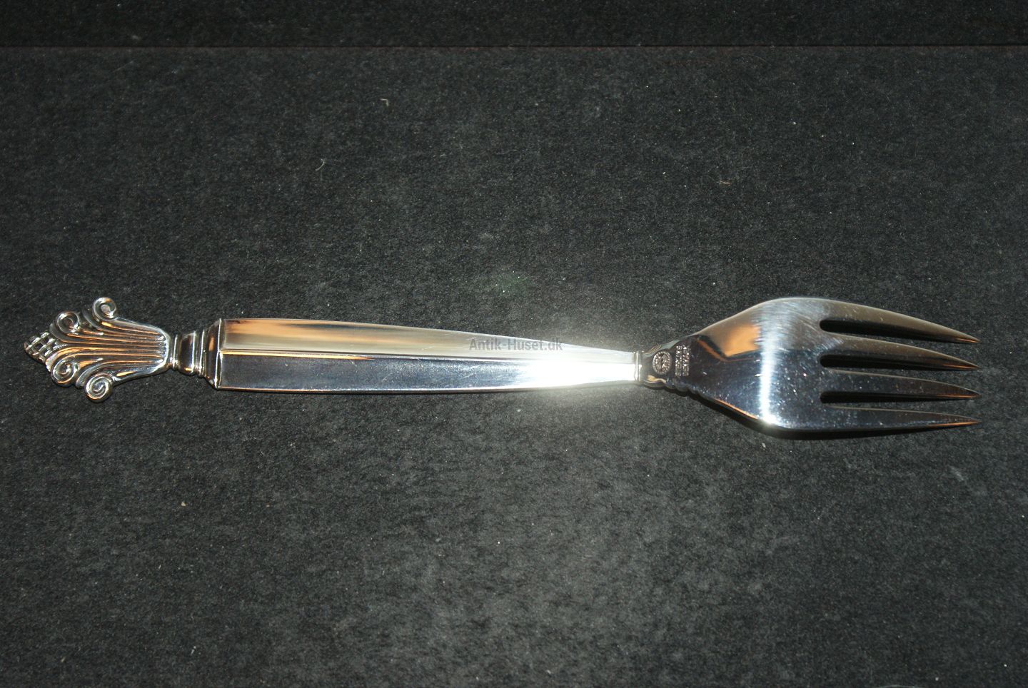 Barnegaffel # 82 Dronning / Acantus #180 Georg Jensen Sølvbestik Længde 12,5 cm. Flot og Velholdt Stand. Alt bestik er poleret og pakke i pose