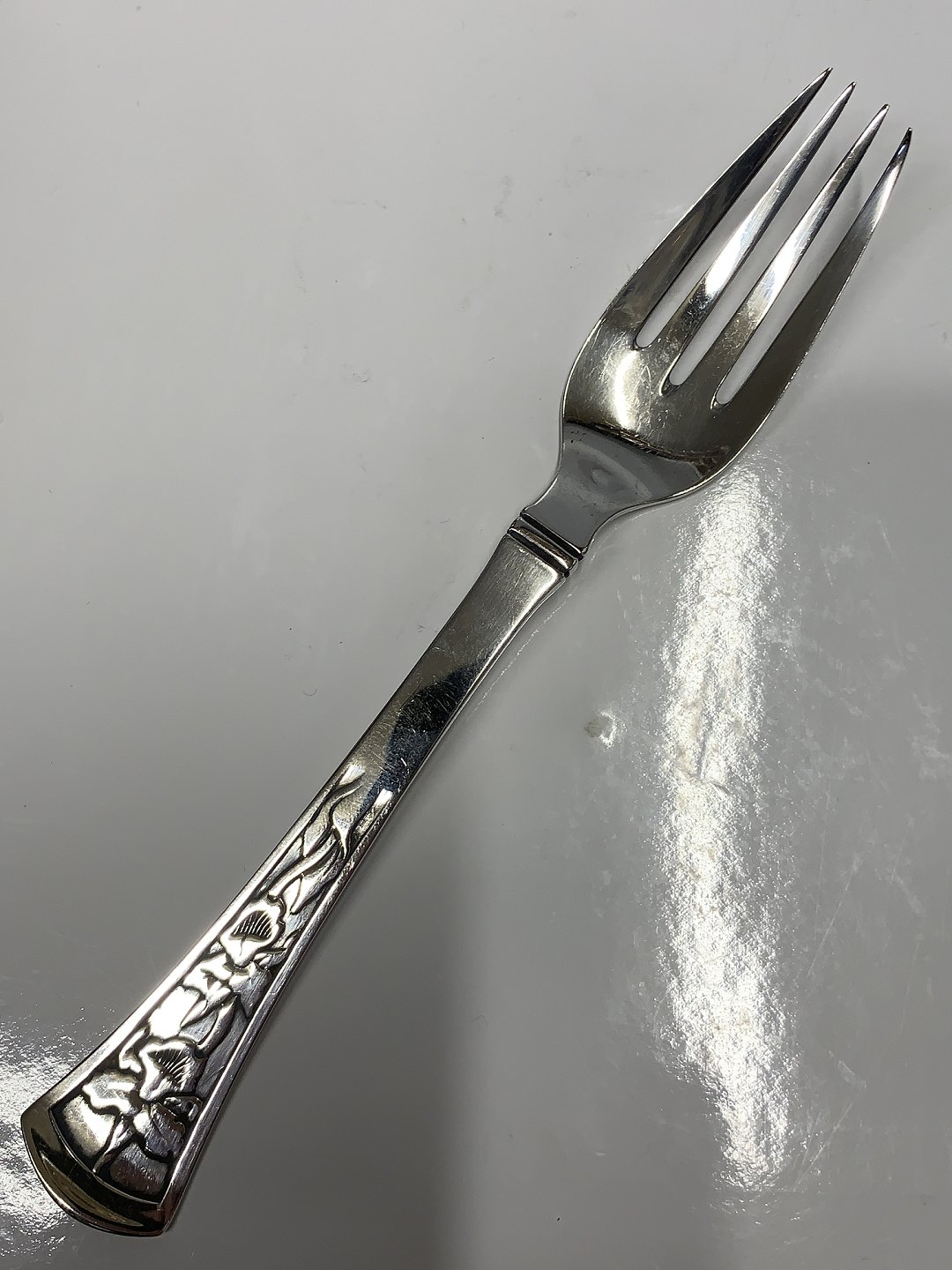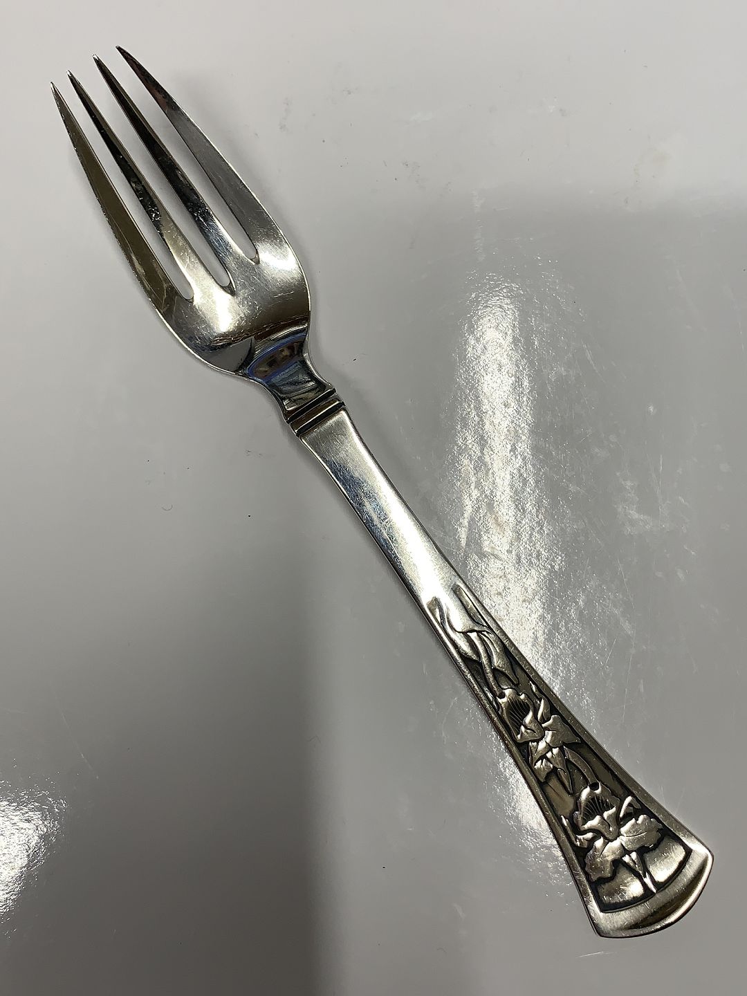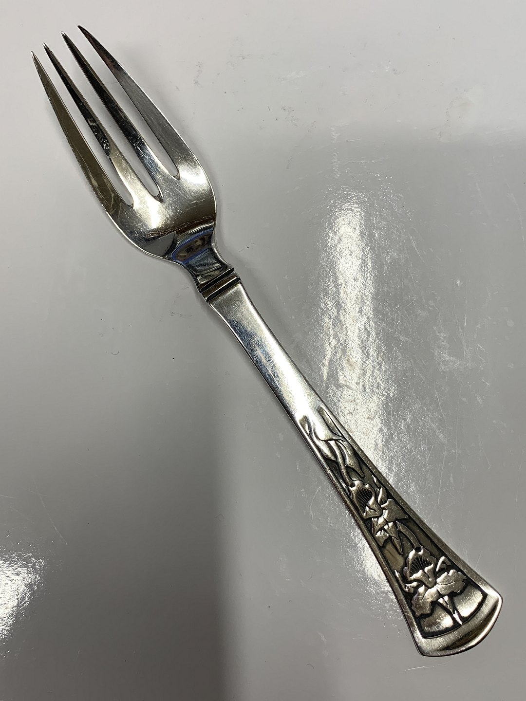 Orchid / Orkide Children's Fork in Silver Length 15.2 cm Made at Horsens Sølvsmedie, Orkide silver cutlery 830s Nice and polished condition Packed in bag