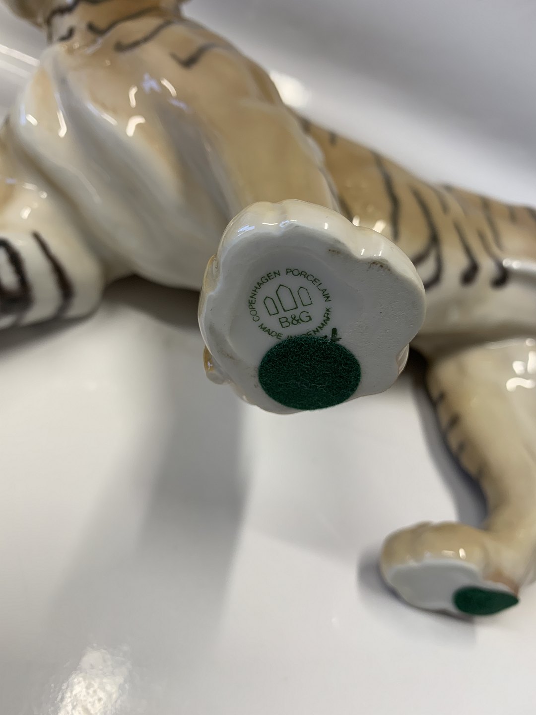 Bing & Grøndahl Tiger figur. Kæmpe Tiger Lauritz Jensen Dek. nr. 2056 1. sortering Højde 24 cm Længde 37 cm. Pæn og velholdt stand