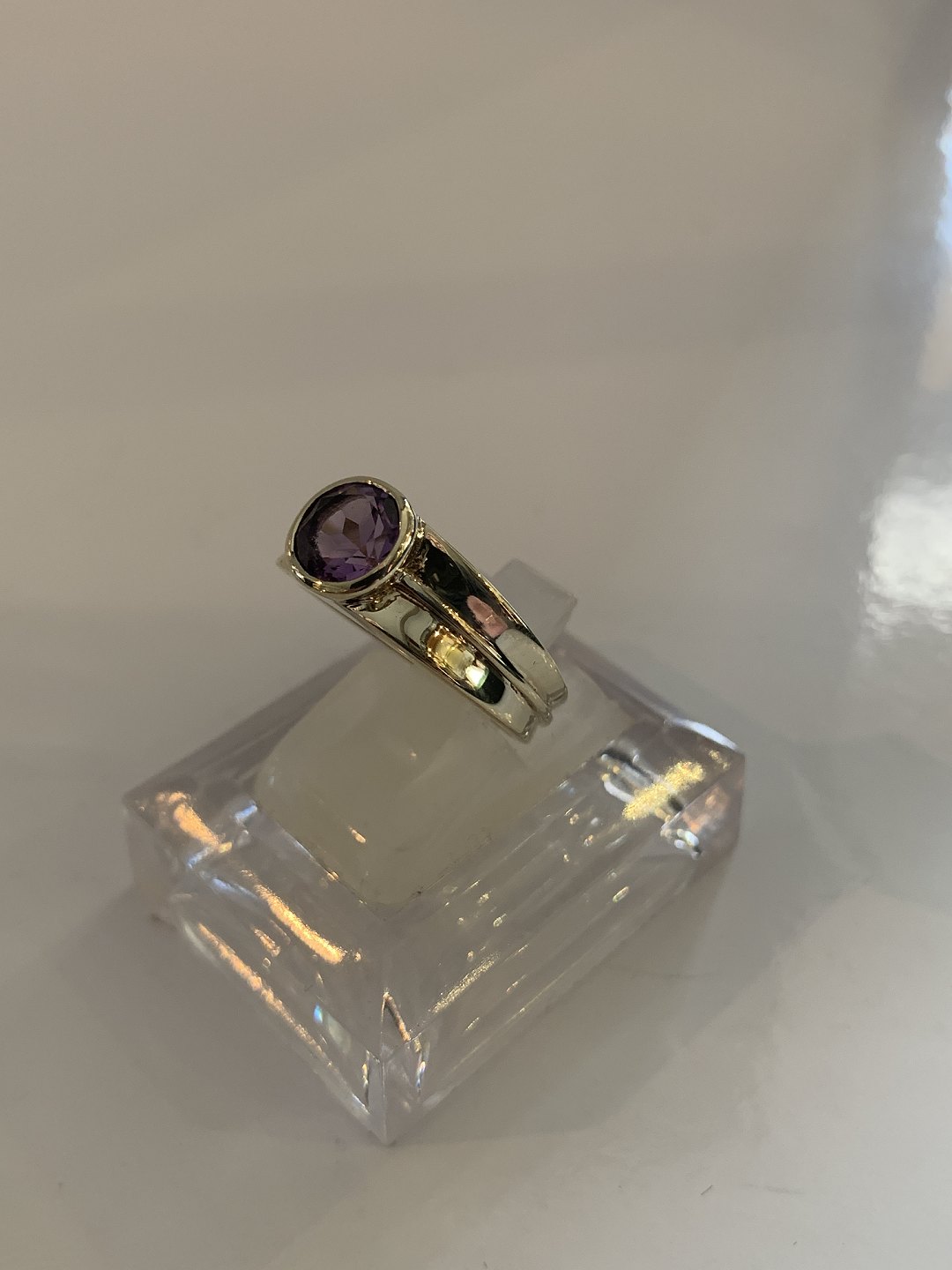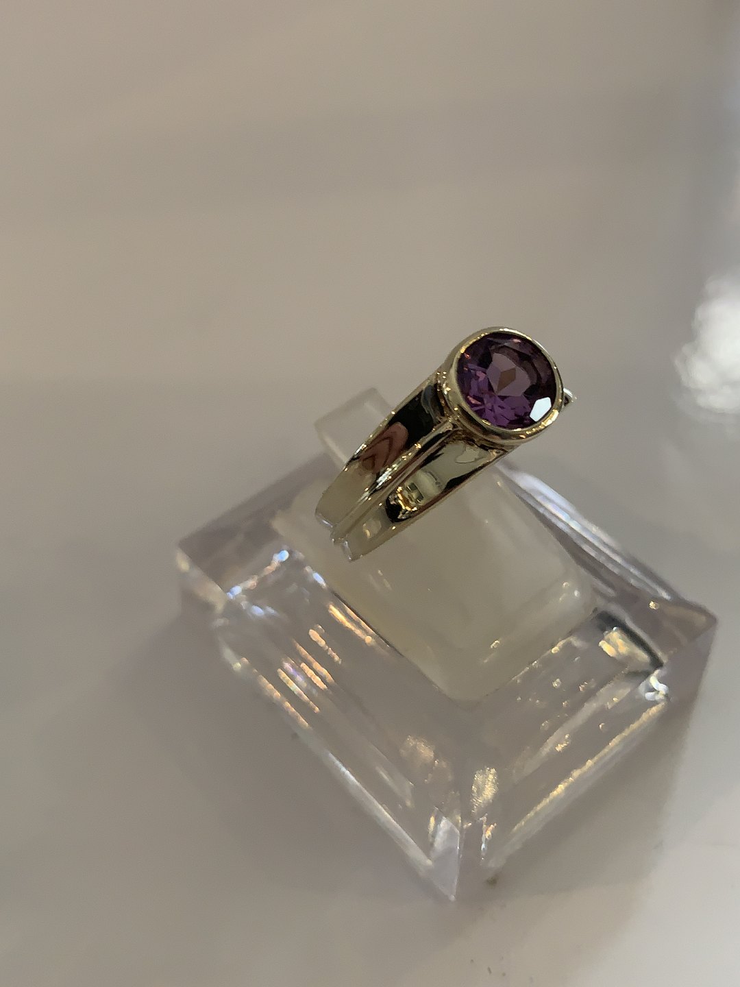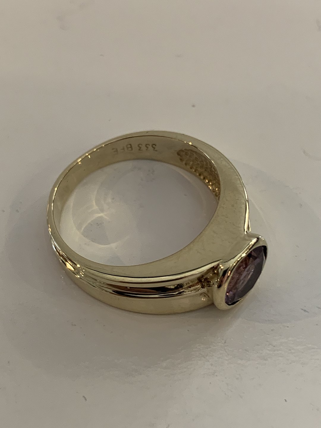 Vintage Damering med lilla sten 8 Karat Guld
