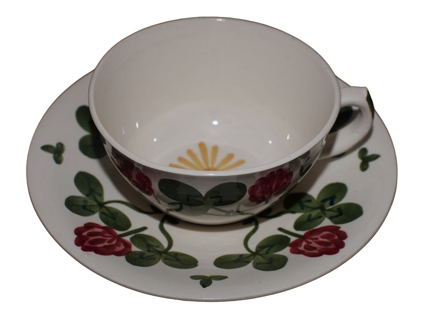 Aluminia Red Cloves, tea cup with matching saucer. The cup is also decorated on the inside.
