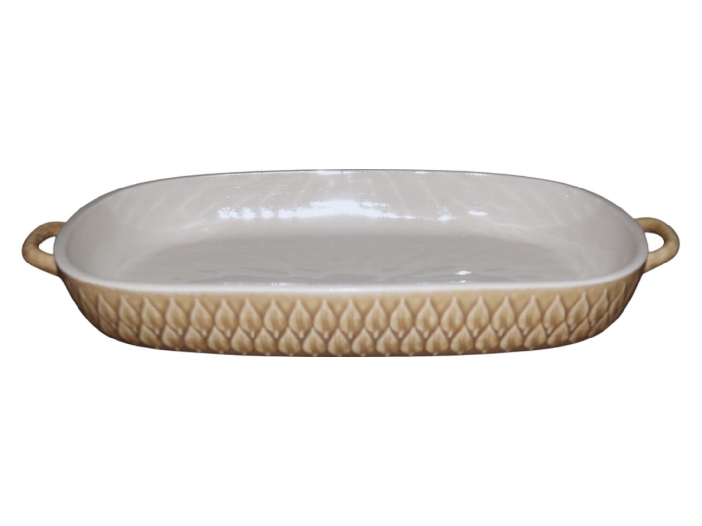 Bing & Grondahl /Nissen/Kronjyden Relief stoneware, ovenproof dish. Designed by Jens Harald Quistgaard. Length 34.2 cm. including the handles. Perfect condition.