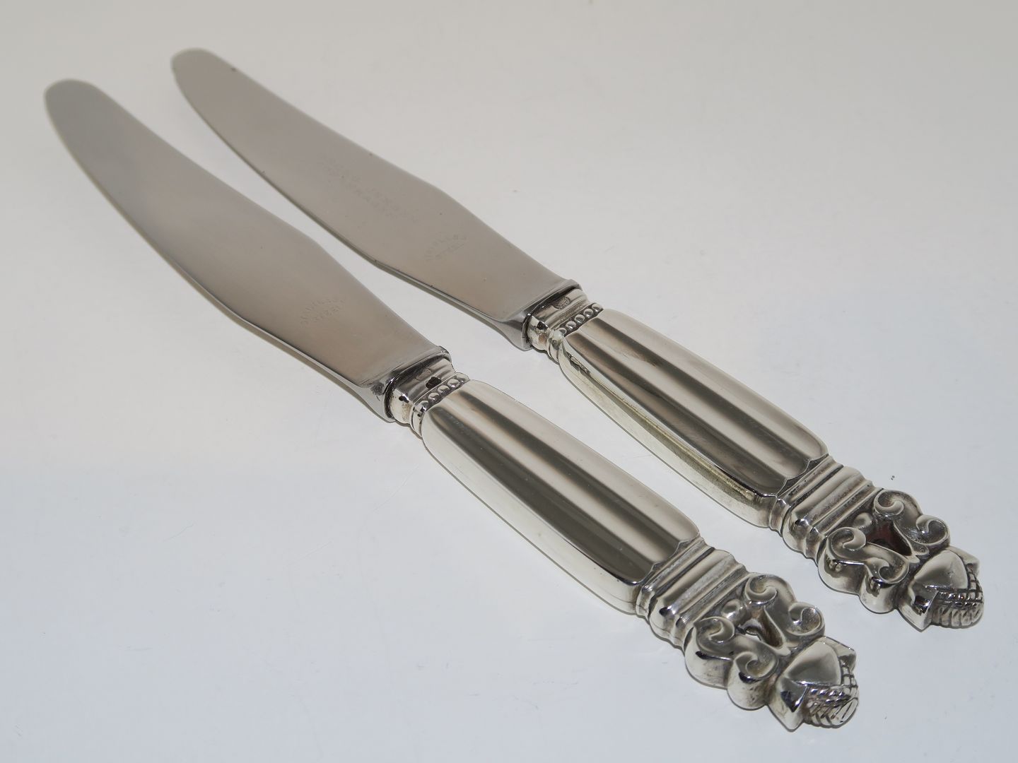 Georg Jensen Konge Sterlingsølv, frokostkniv. Produceret efter 1945. Længde 20,7 cm., knivbladet måler 11,9 cm. Perfekt stand uden indgraveringer.