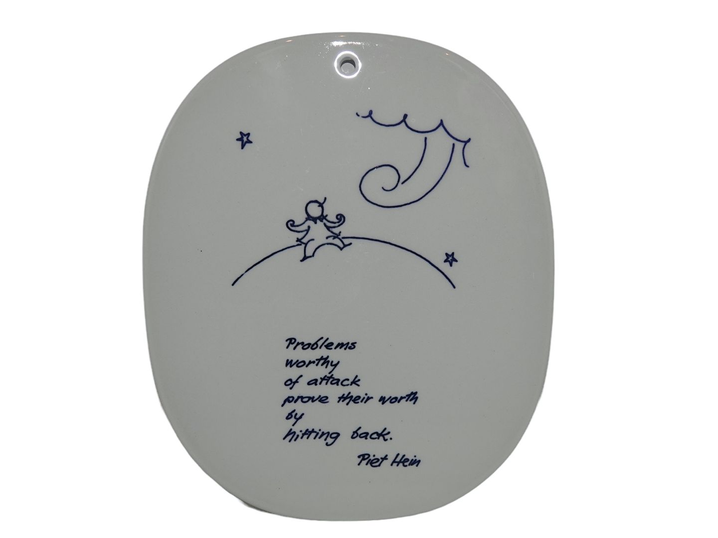 Royal Copenhagen Piet Hein platte med gruk på engelsk.