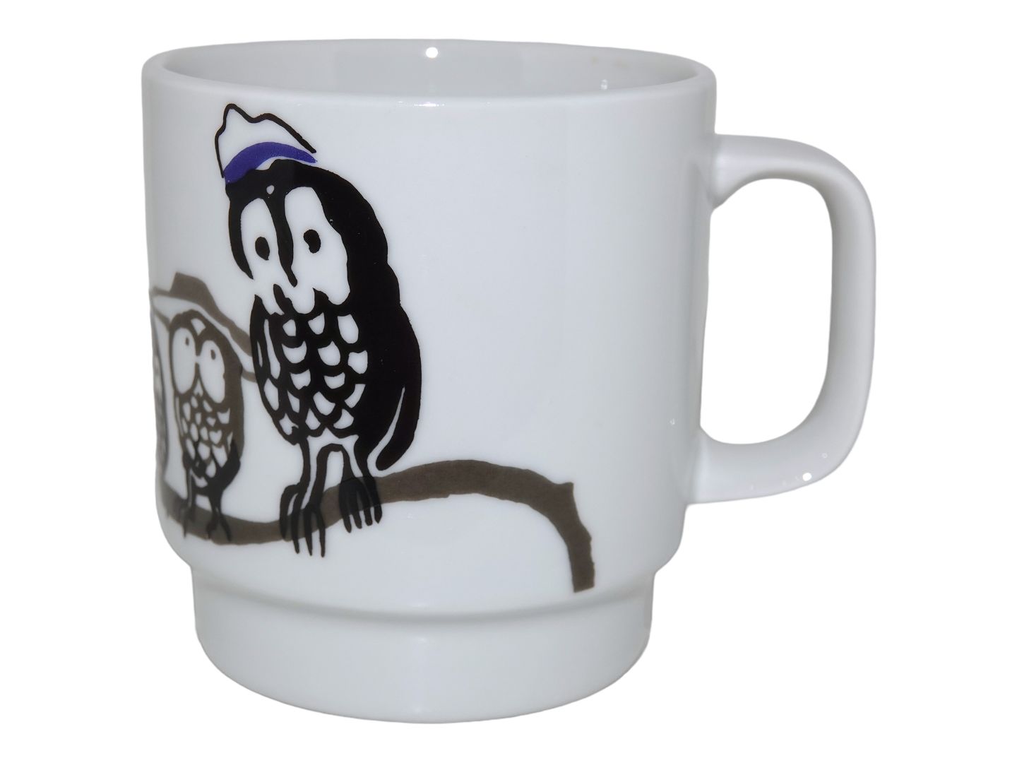 Bing & Grøndahl krus med ugler designet af Helge Refn, Dekorationsnummer 772/11844. 1. sortering. Diameter 8,5 cm., højde 9,2 cm. Perfekt stand uden fejl.
