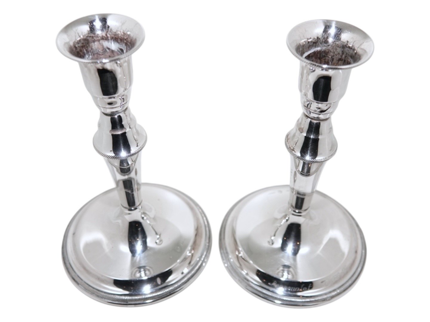 En lysestage har indgravering på bundkanten "PERSONALET FHL 1-11-1959", se to nærfotos. Ellers fin stand.