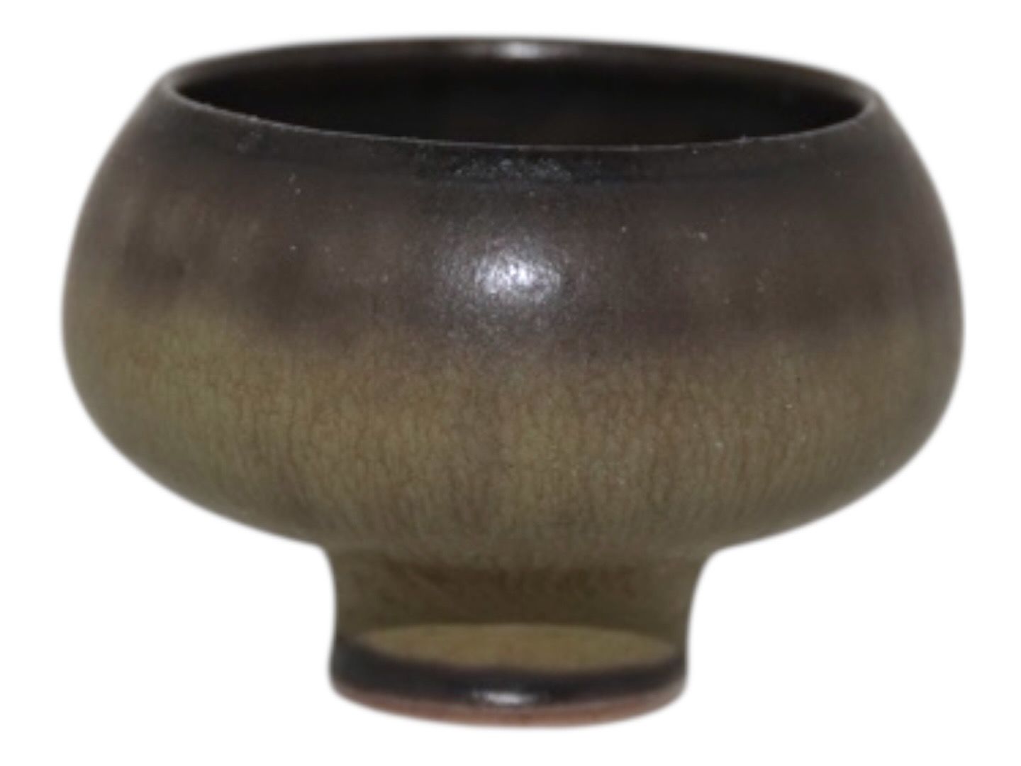 Höganäs keramik fra Sverige, miniatureskål designet af John Andersson (1899-1965). John Andersson var en af Sveriges bedste drejere til miniature vaser og skåle. Højde 3,5 cm., diameter 3,2 cm. Perfekt stand.
