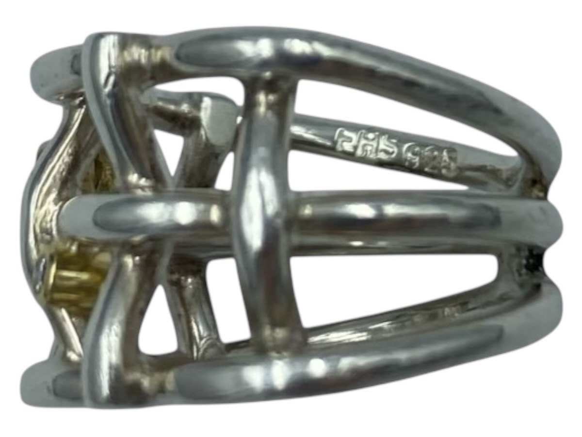Frits Heiring Sørensen sterling silver, modern and wide ring with two stones.