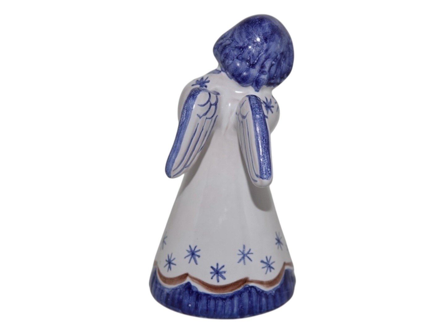 Hjorth Keramik, engel figur / lysestage med hvid og blå dekoration. Dekorationsnummer 420. Højde 11,5 cm. Perfekt stand.