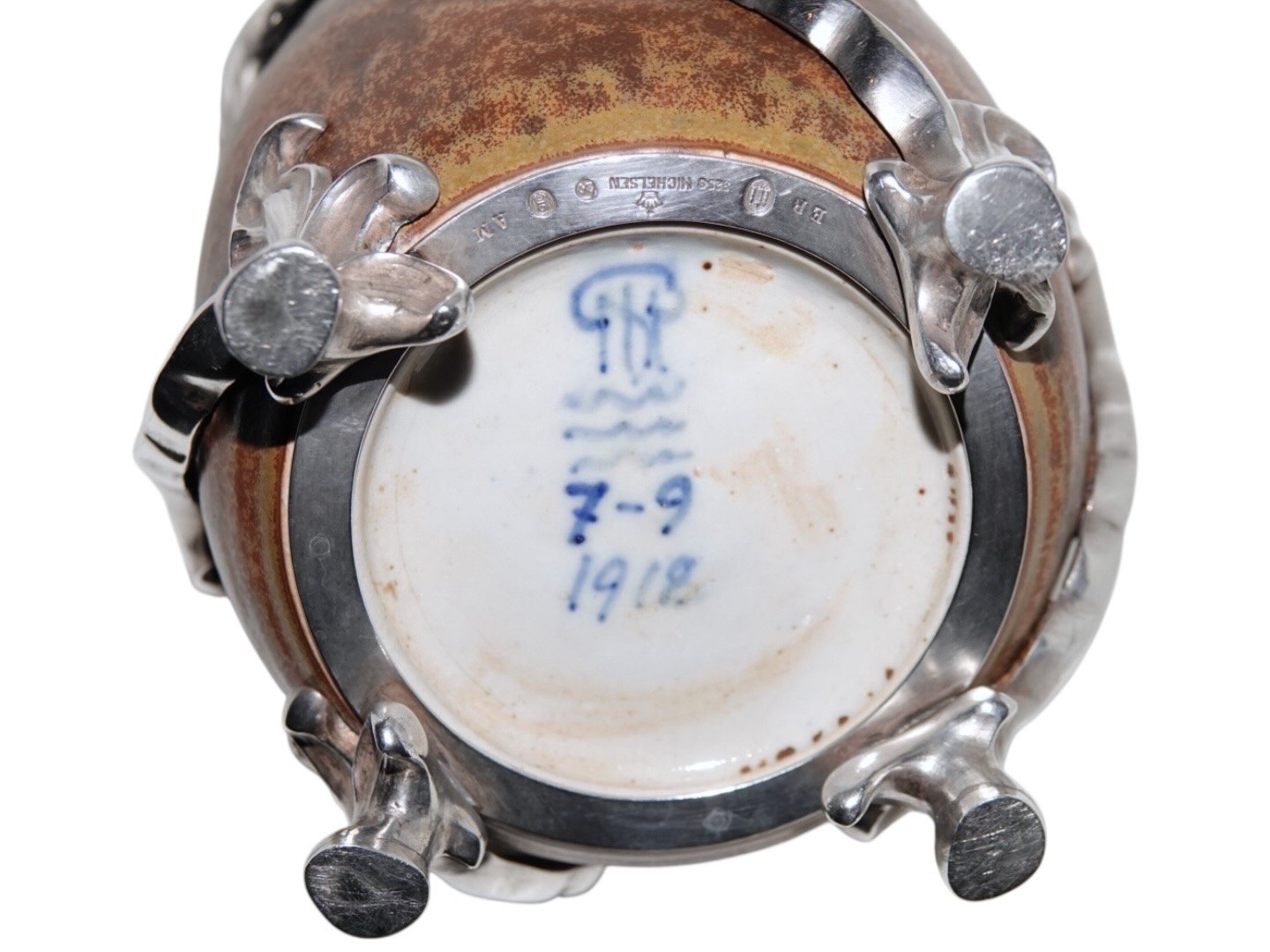 Royal Copenhagen keramik, stor og unik Patrick Nordström vase med original, ekstravagant og kraftig sølvmontering og ametyster.