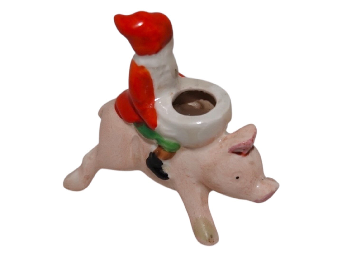 Julemand på gris figur / lysestage til et lille stearinlys.