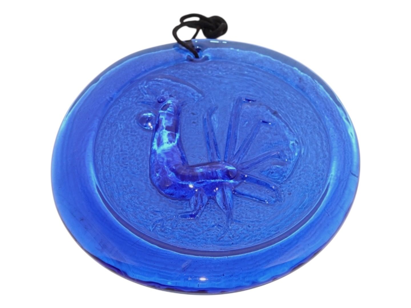 Holmegaard stor mørkeblå solfanger med hane fra 1970'erne.
