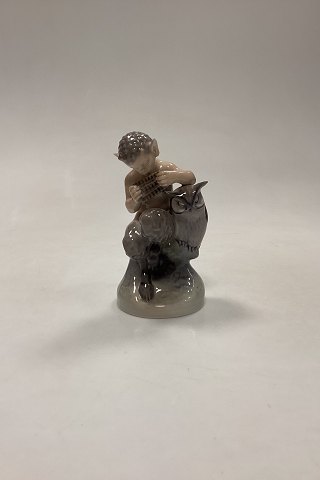 Royal Copenhagen Figur Faun med Ugle No. 2107. Designet af Chr. Thomsen i 1920.
