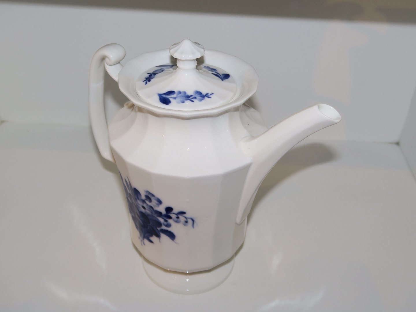 Royal Copenhagen Blå Blomst Kantet, sjælden lille kaffekande.