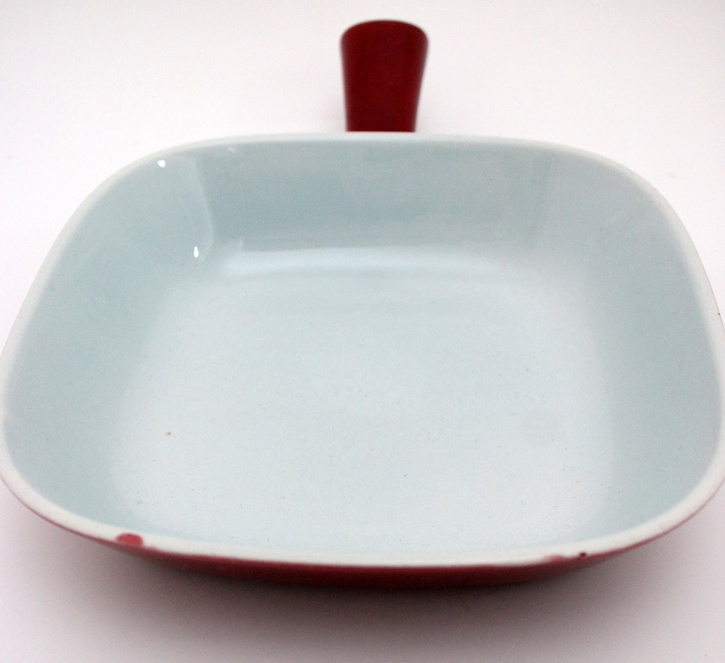 Kasserolle. Længde 22 cm. Højde 7,5 cm. 14x1 cm. Brændingsfejl i bund. Pris: 150 kr.