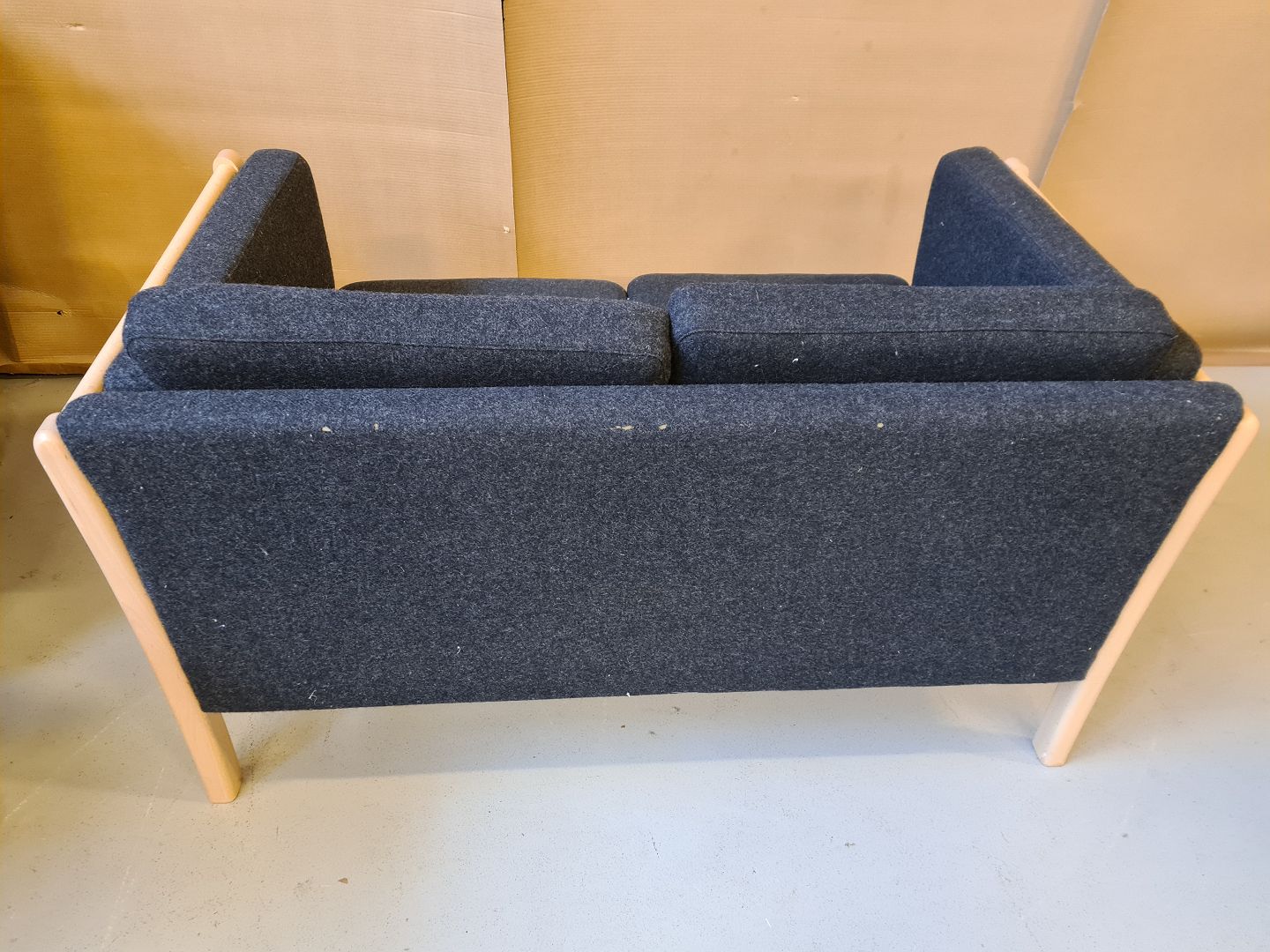 Sofa i bøgetræ med hynder i sort uld betræk fra 1990erne.