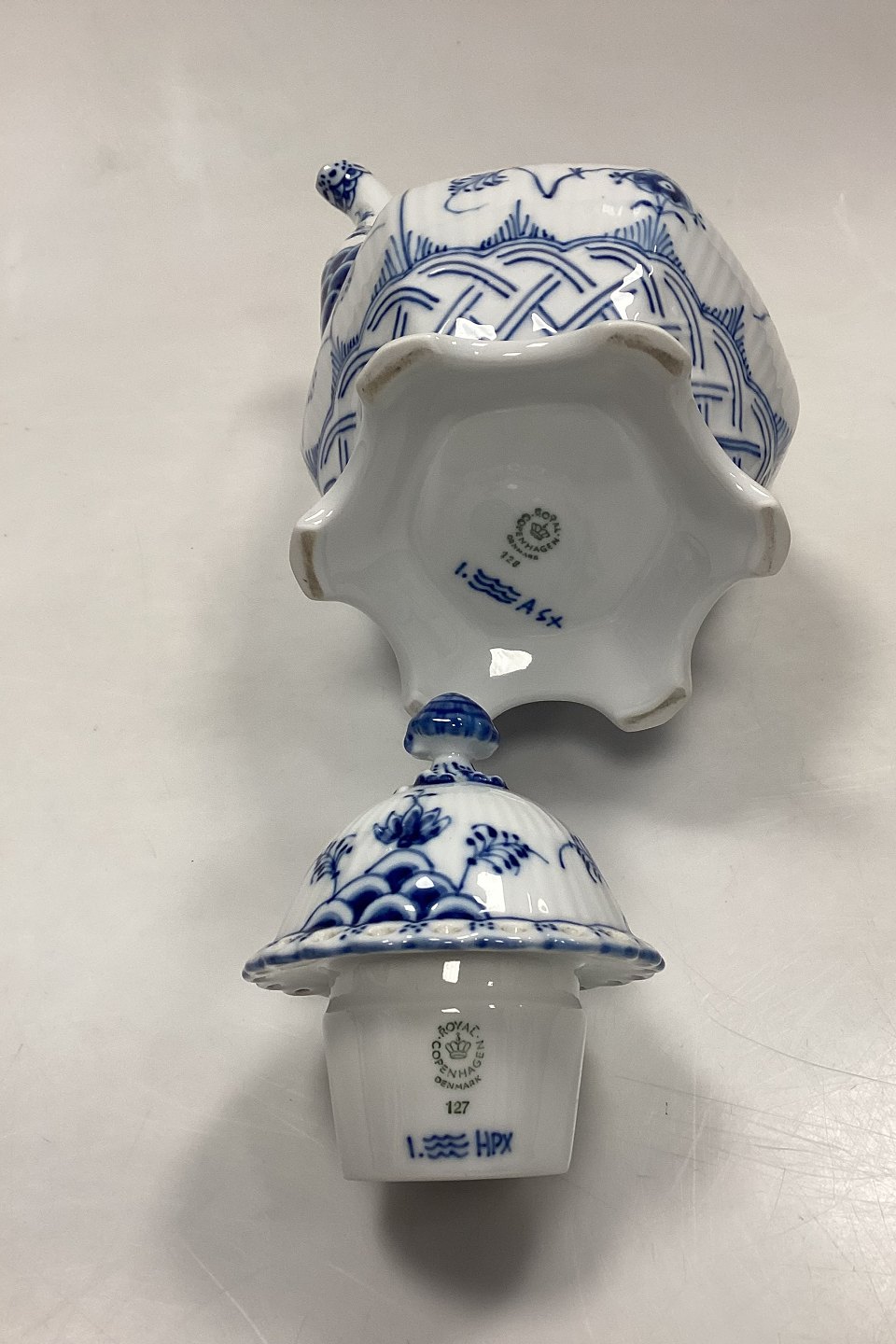 Royal Copenhagen Musselmalet Helblonde sekskantet Kaffekande No. 128 / Låg No. 127. Måler 29 cm / 11,41 in. 1. Sortering.