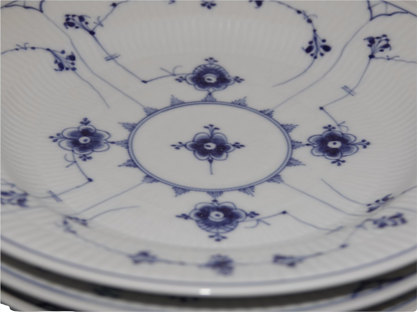 Royal Copenhagen Musselmalet Riflet, stor middagstallerknen.