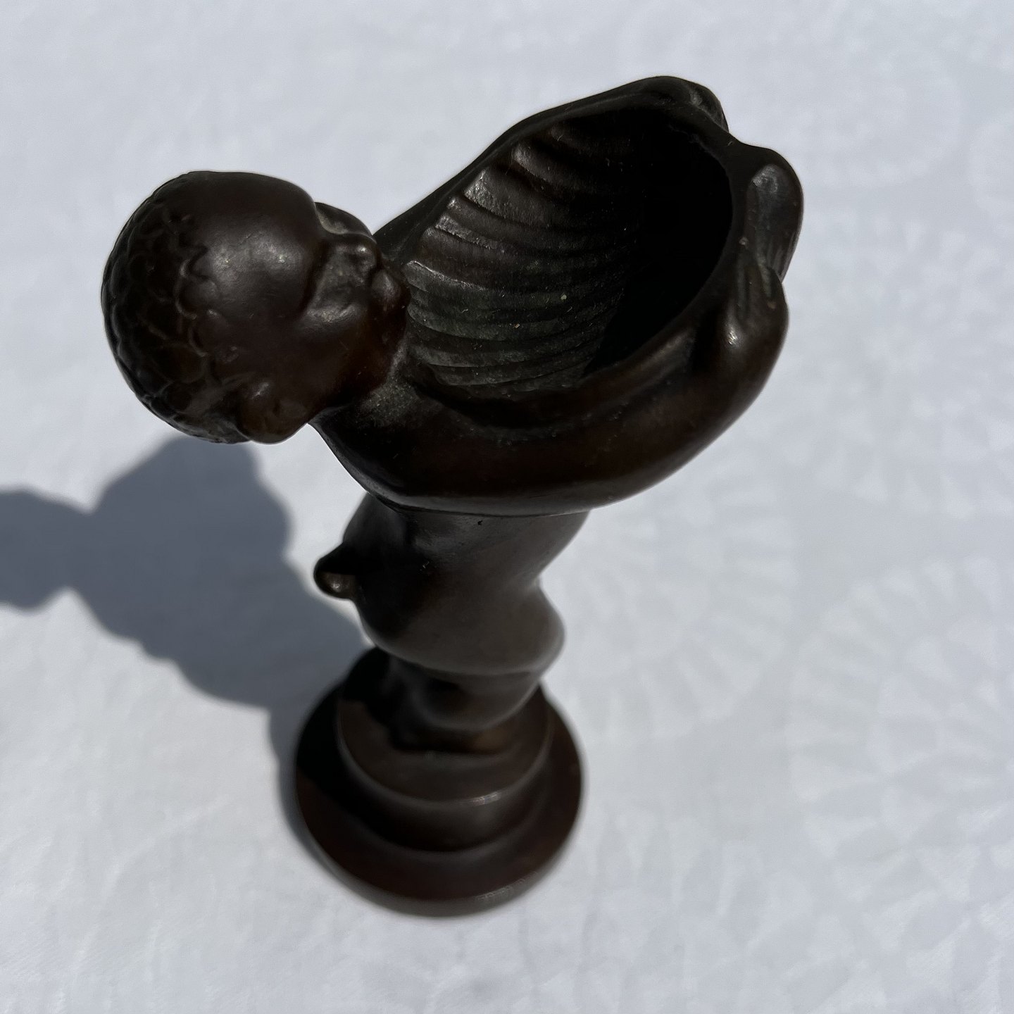 Bronze figure, Faun with seashell, 11 cm high, Brdr. Grage bronze foundry, Design Jens Jacob Bregnø * Nice condition *