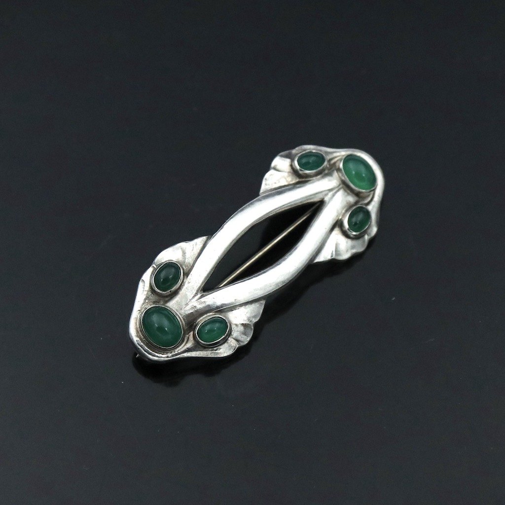 Georg Jensen. Sterling Silver Brooch #86 with Green Agates. 1915-19 Hallmarks.