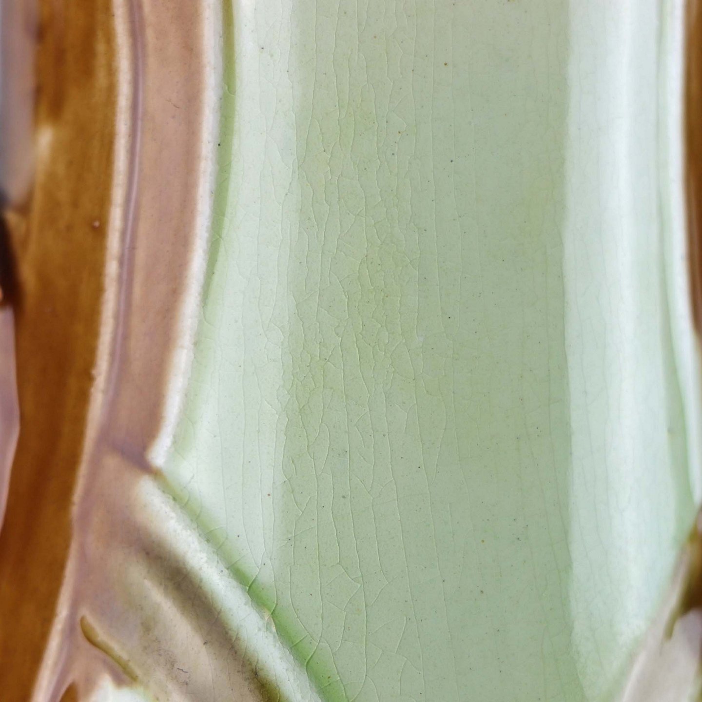 Høj vase i fajance i stilen art nouveau Majolica dekoreret med blade og bær. Nr. 6084