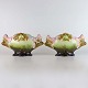 Et sæt ovale bordvaser i fajance i stilen art nouveau Majolica dekoreret med blade og agern. Nr. 6428