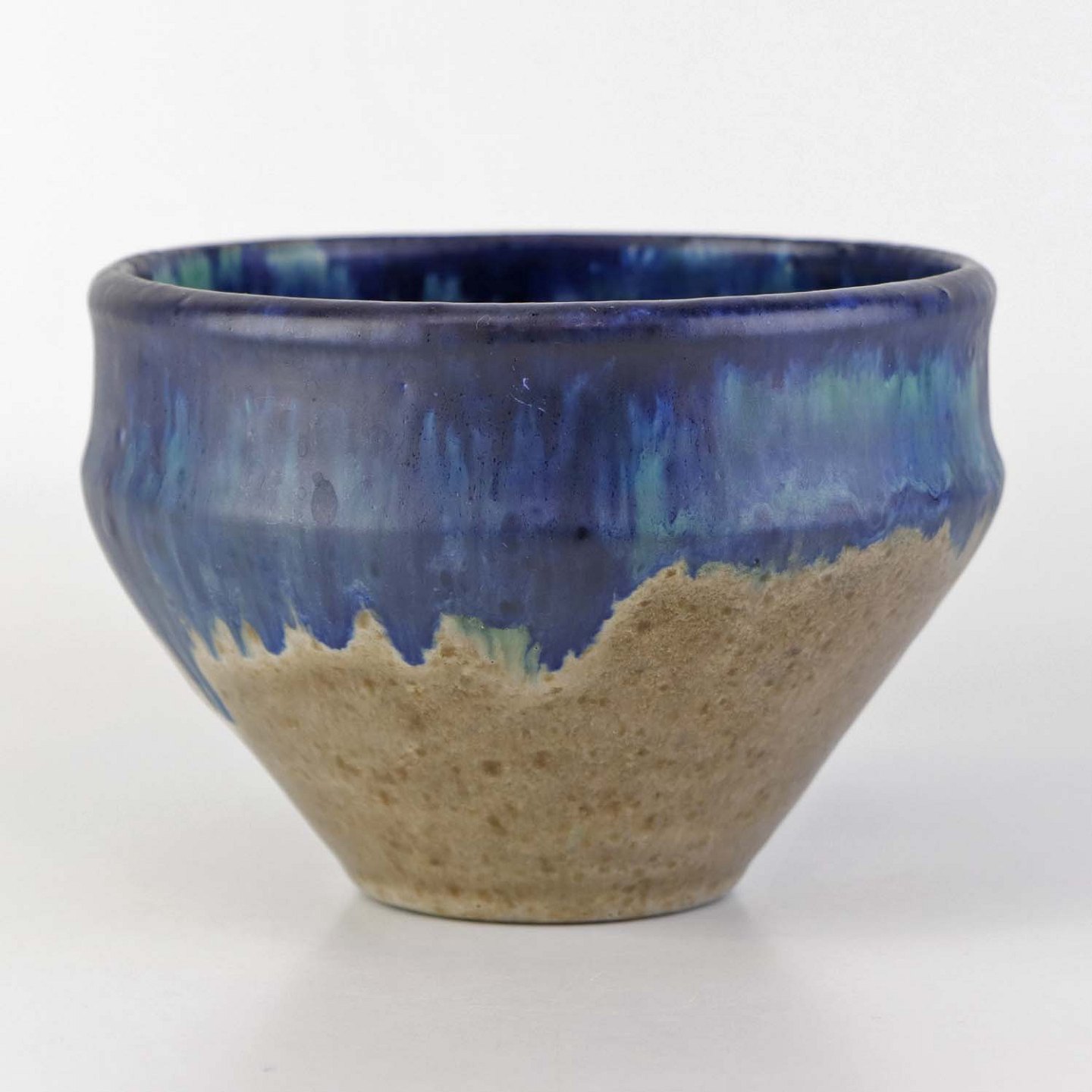 Urtepotteskjuler i blå glaseret keramik