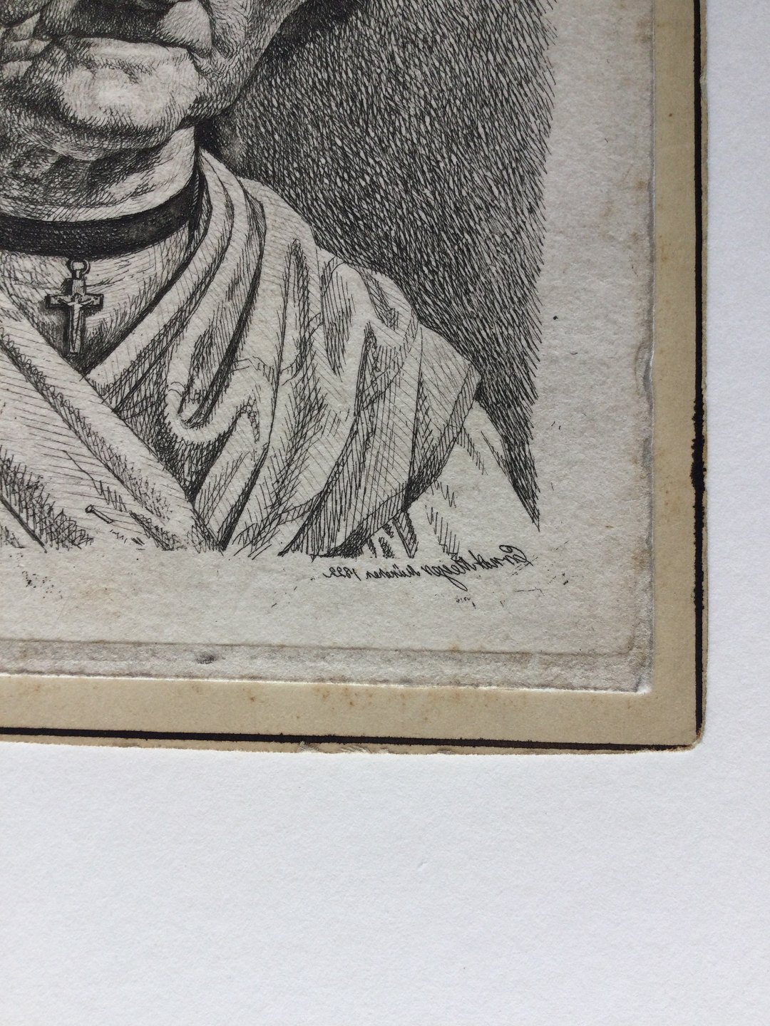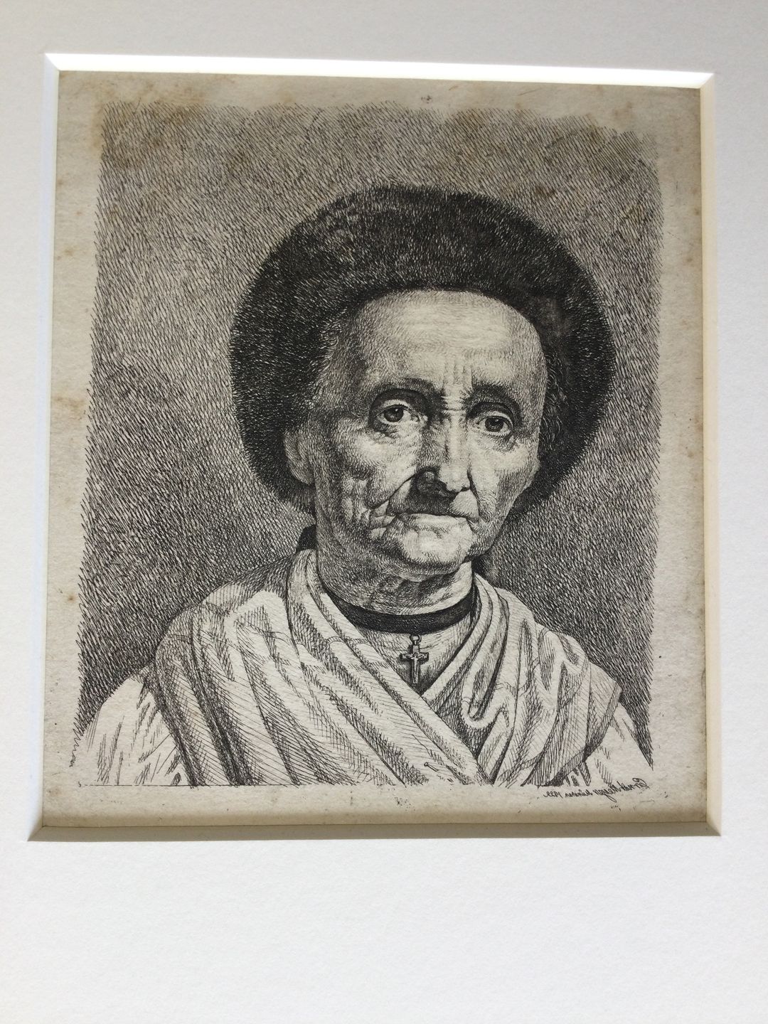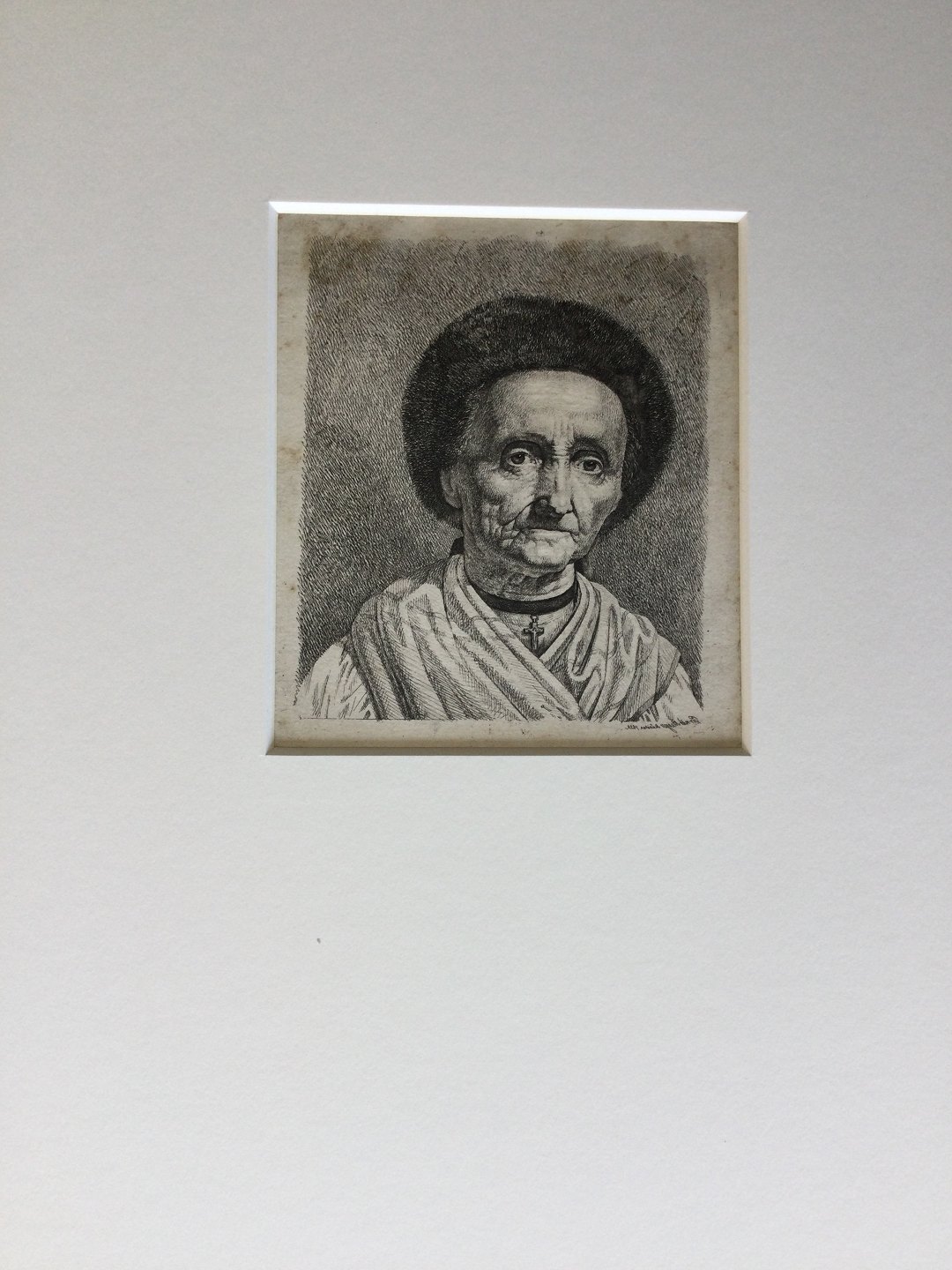 Radering af Ernst Meyer - Portræt af Ældre Tyrolerinde med kors, München 1822.