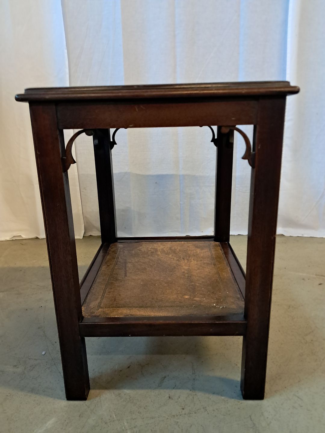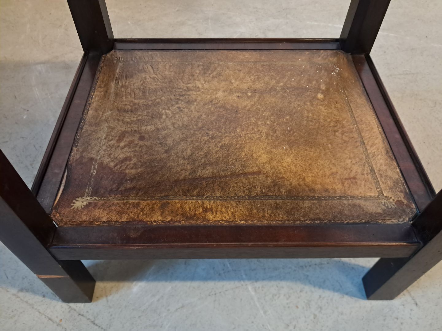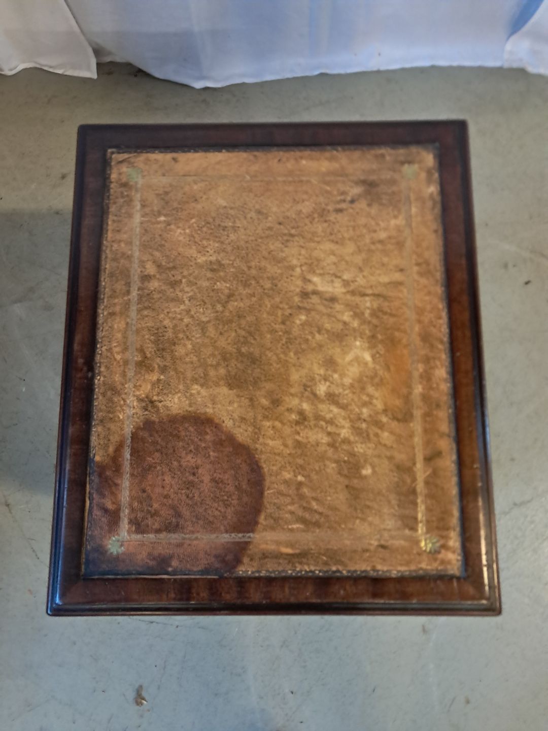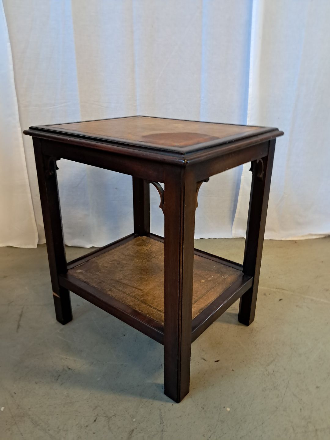 Lampebord i fineret mahogni med læder indlæg, fra 1980erne.