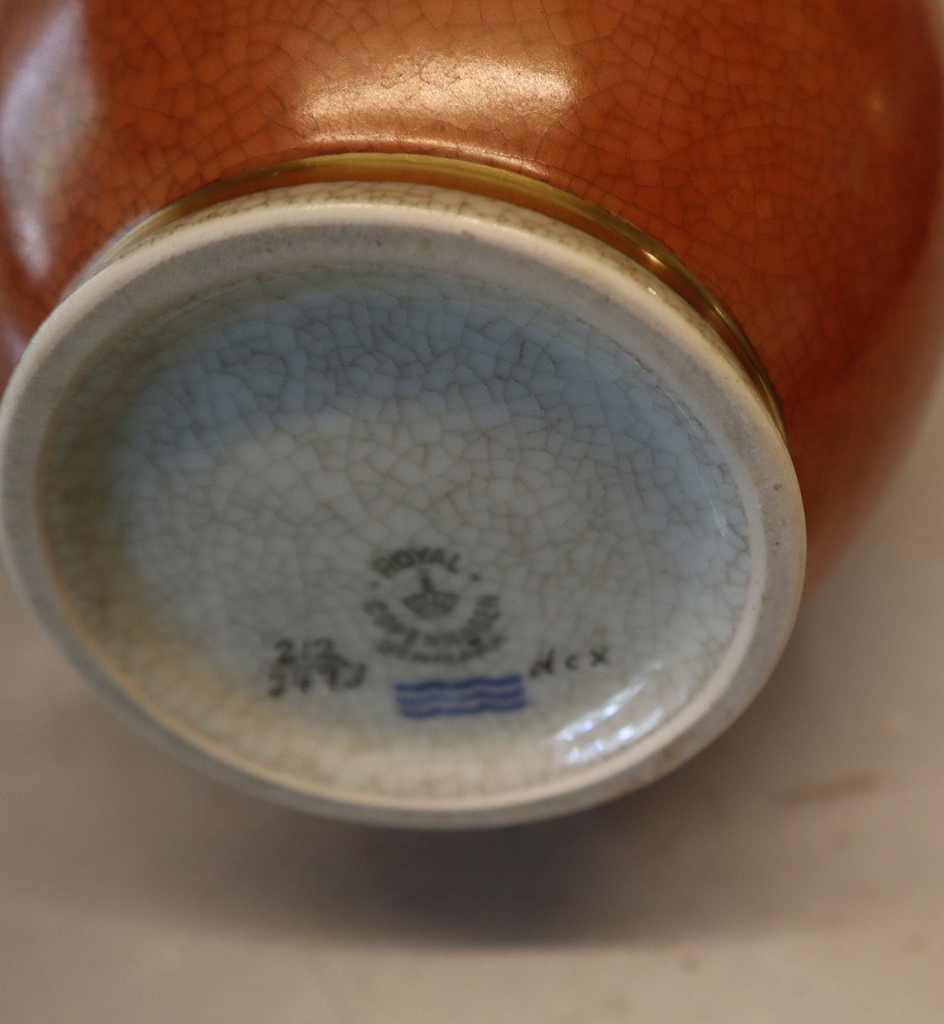 212-3473 RC Orange vase with gold and grey 25 cm Royal Copenhagen Crackleware Craquelé, (Crackelure)