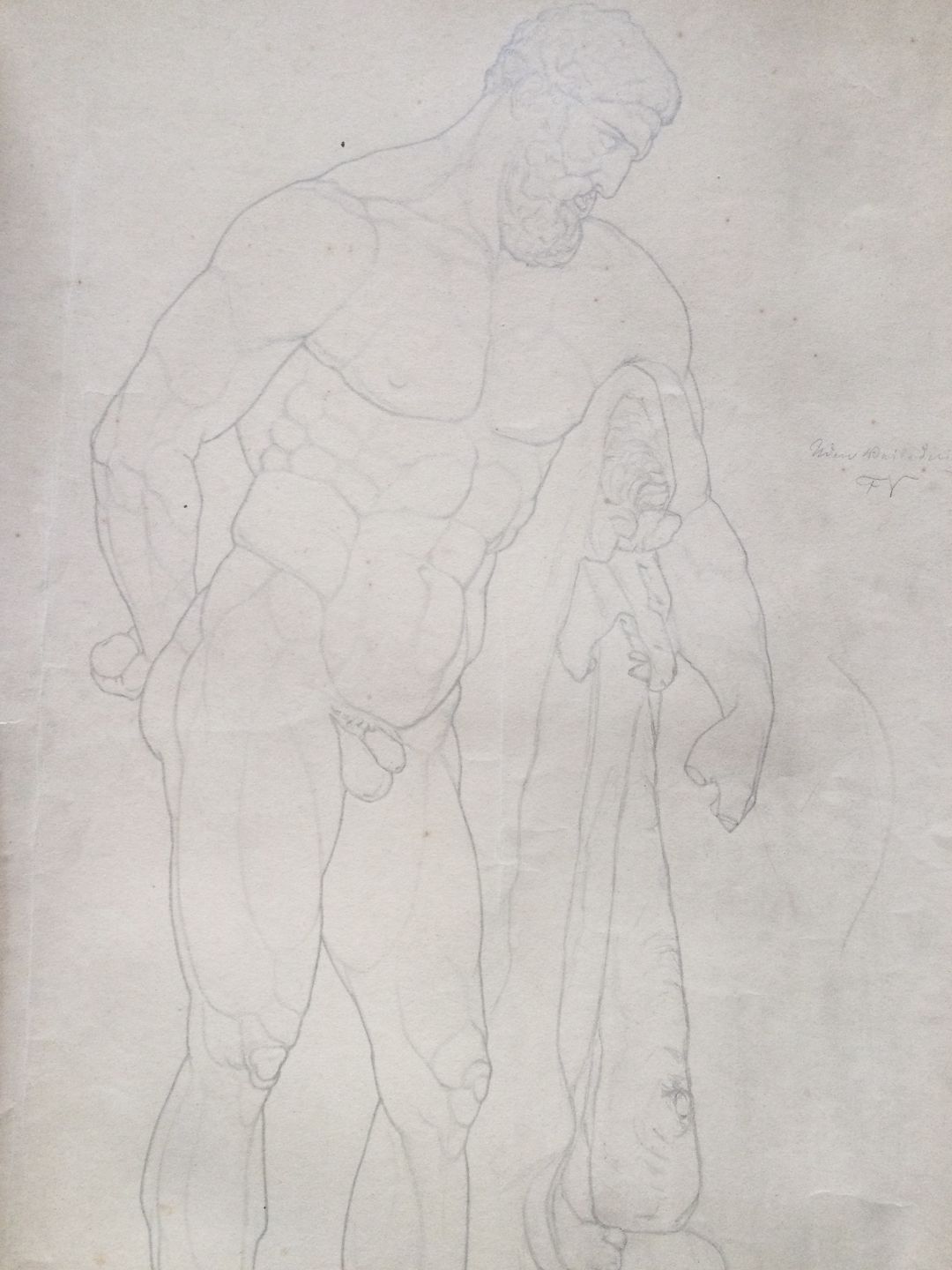 Akademitegning af Carl V. Meyer - Nøgen mand med kølle - Den Farnesiske Herkules 1893.