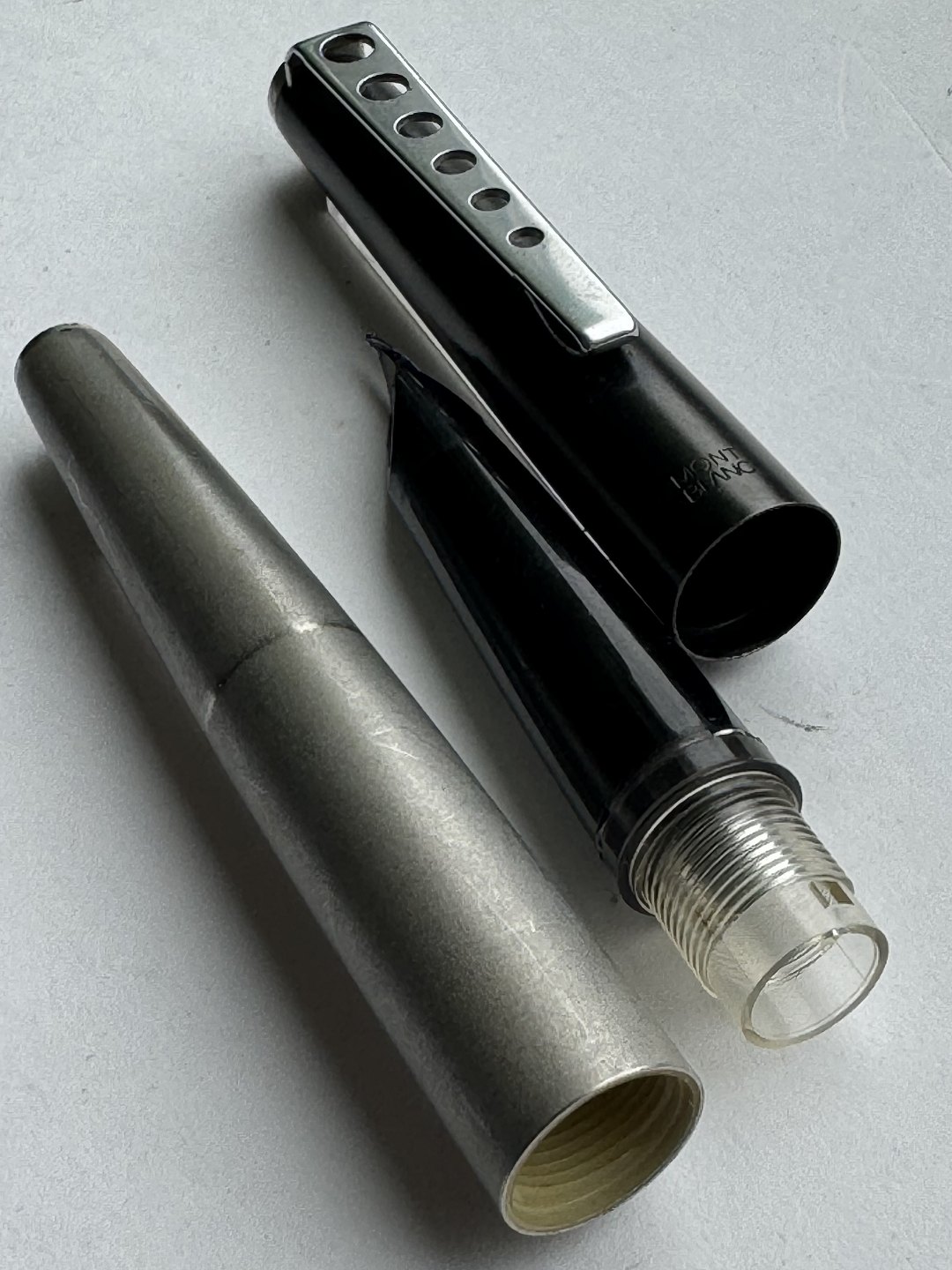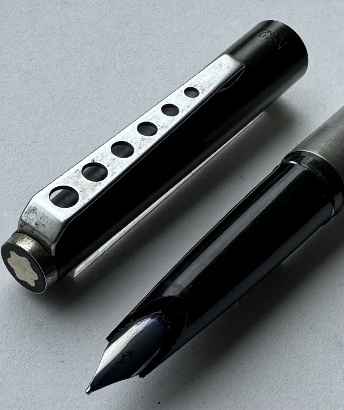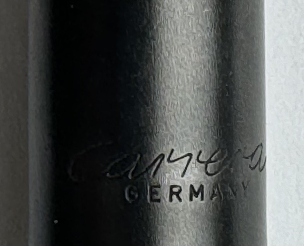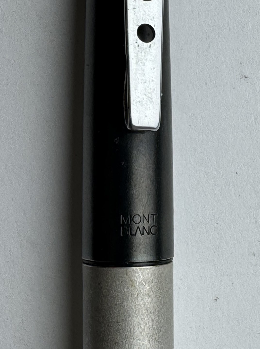 Montblanc Carrera kuglepen. Nederste del i stål med øverste del sort. Clip i retro (racer) stil, med “lufthuller” som i kørehandsker fra 1970’erne. Fremstår i perfekt stand. Klar til brug ! Fungerer med original Montblanc refil.