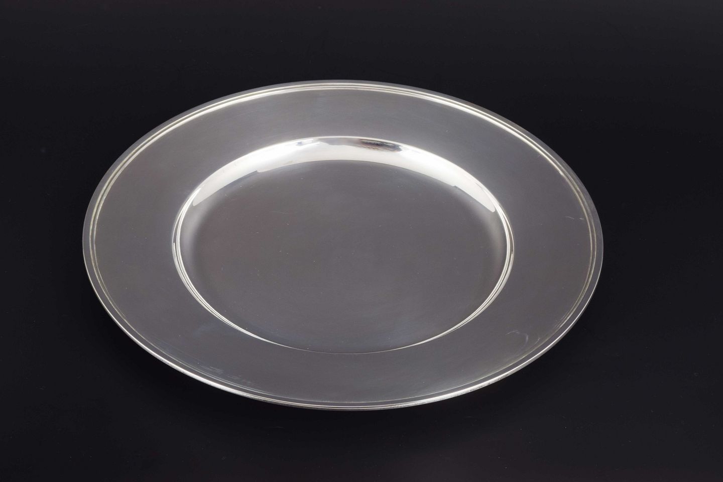 Klassisk rund dækketallerken i enkel formgivning med let forhøjet kant, stemplet med tretårnet 830S.