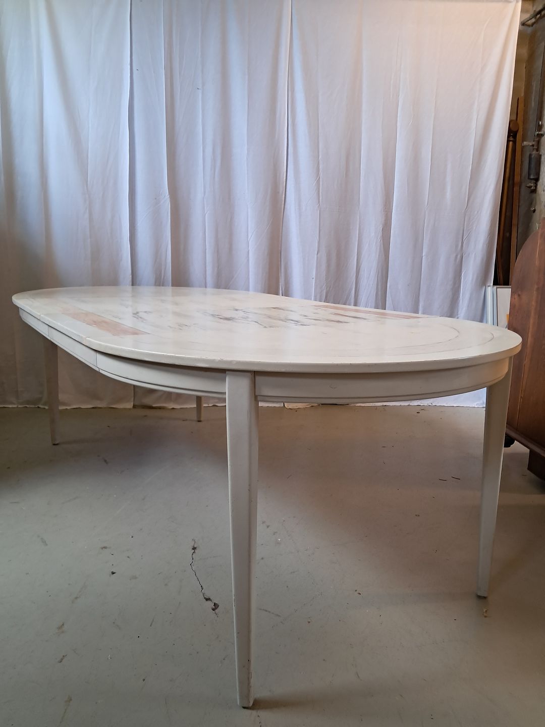 Malet spisebord med 2 tillægsplader, fra 1980erne.