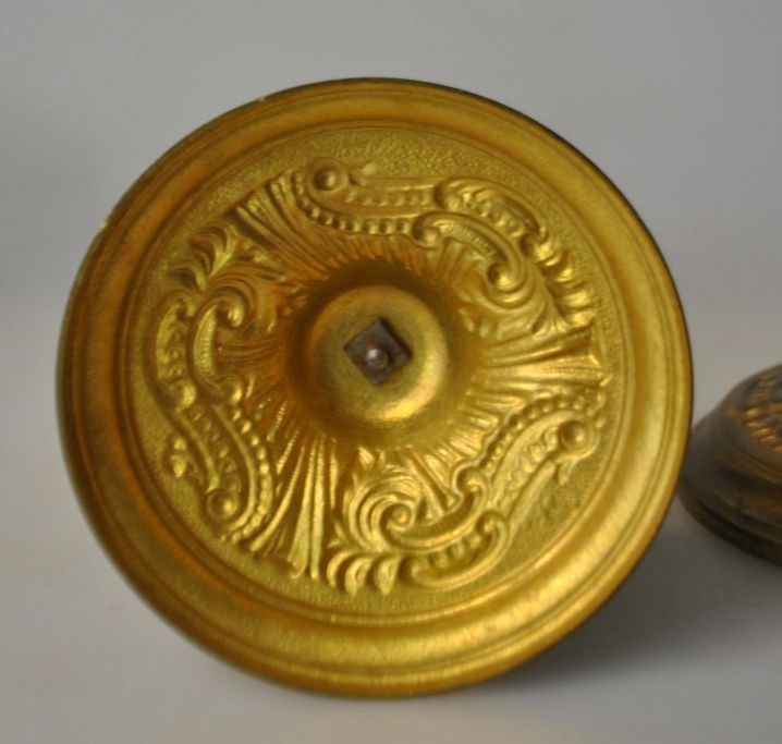 Par franske stager, 19. årh. Med udsmykninger af blomster og snoninger. På rund fod. H: 20 cm. Dia: 9,5 cm.