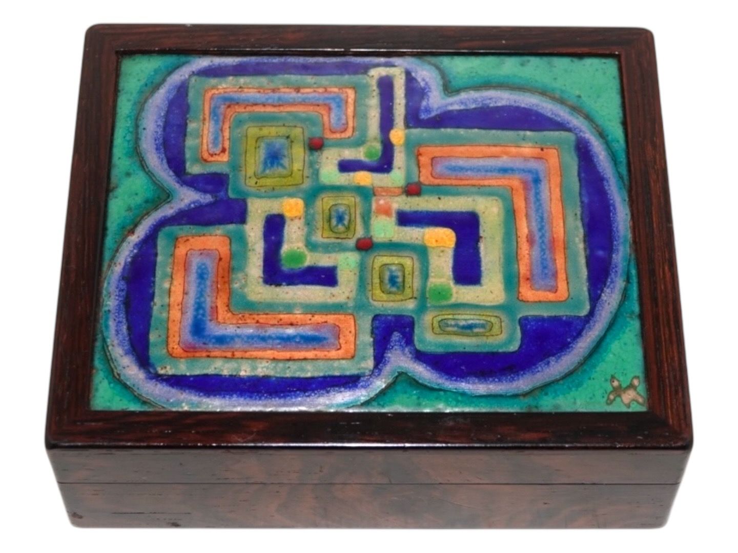 Alfred Klitgaard skrin / æske af palisander med Bodil Eje emalje.