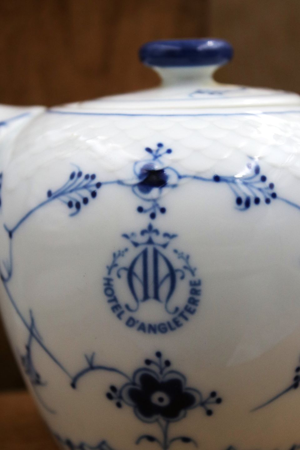 Bing & Grøndahl Blåmalet / Musselmalet tekande med logo fra Hotel D`Angleterre...