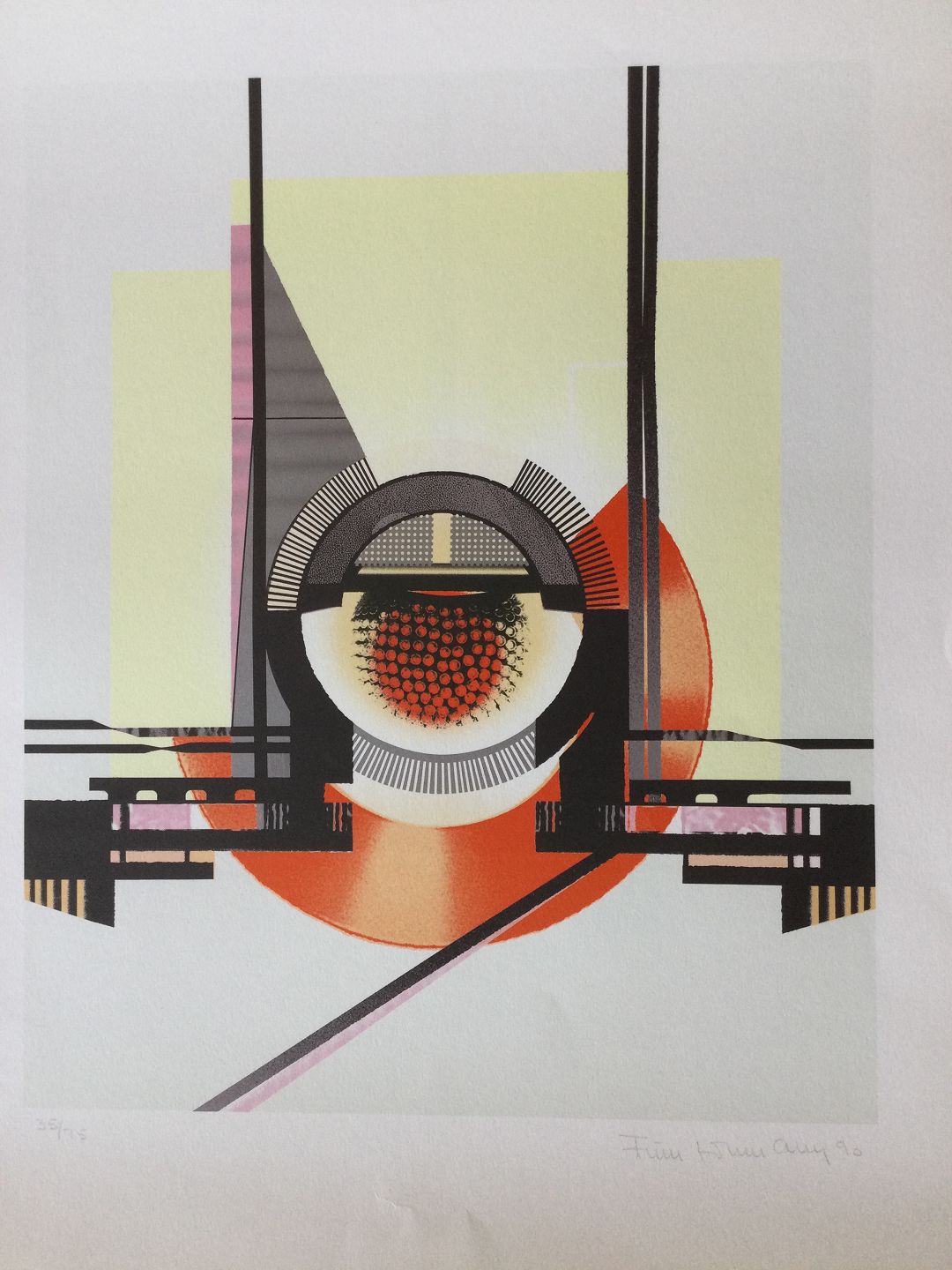 Farvelitografi af Finn Lohmann - Komposition 1990