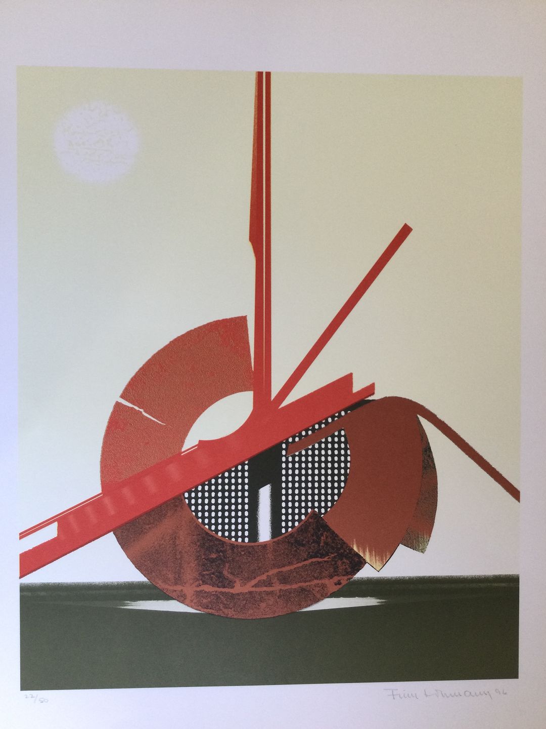 Farvelitografi af Finn Lohmann - Komposition 1996.