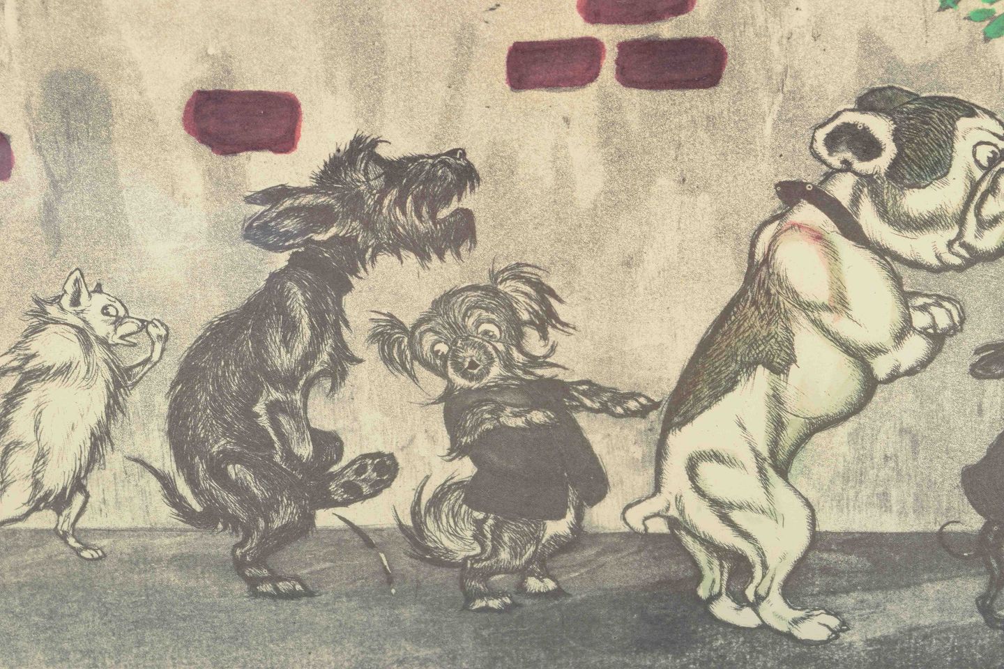 Et humoristisk motiv af den franske kunstner Boris O’ Klein, kendt for sine satiriske scener med hunde i menneskelige situationer. Værket viser en række hunde i kø foran et WC, udført med karikeret udtryk og let kolorering.