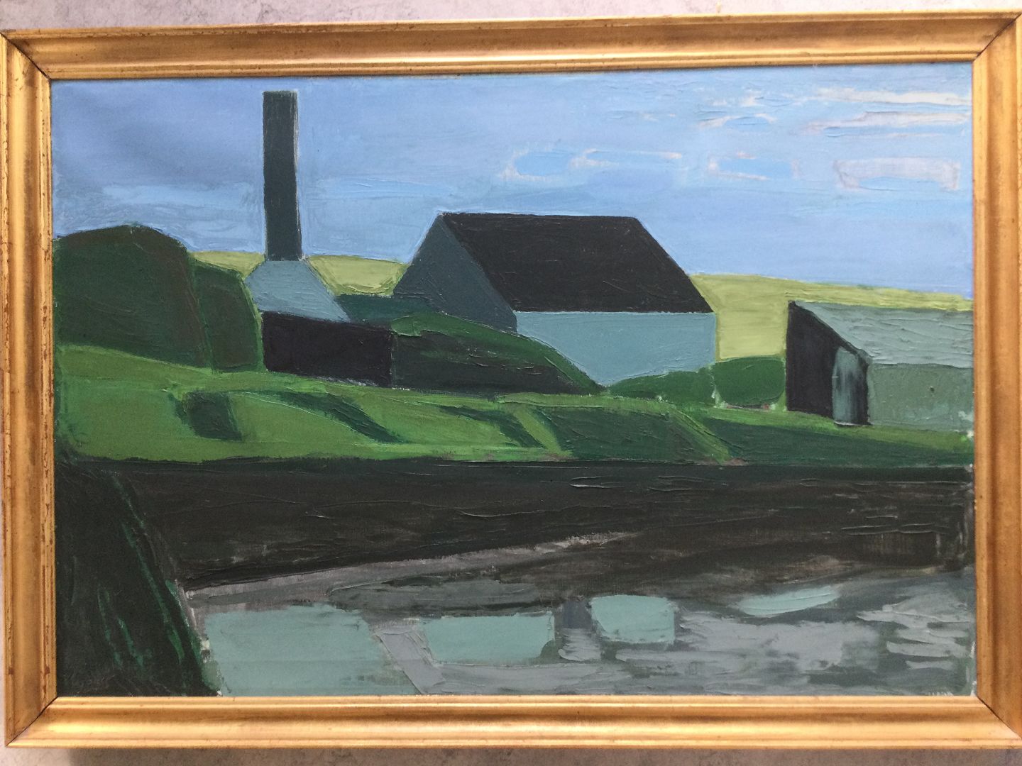 Maleri af Alfred Bay - Landskab med huse.
