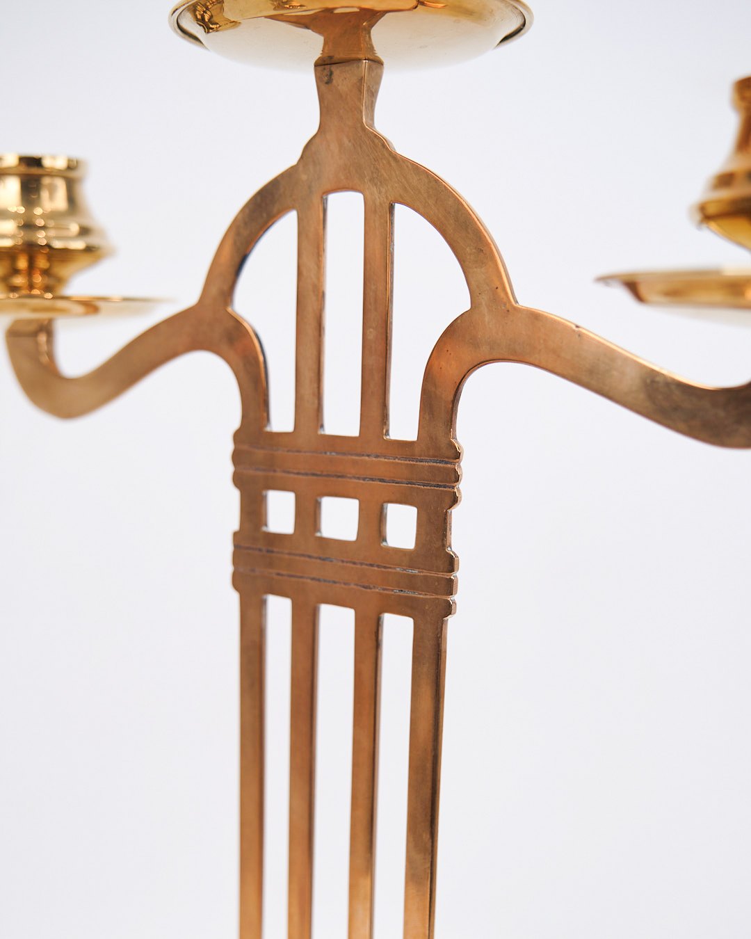 Sæt af to høje trearmede lysestager i messing fra 1920’erne i Jugendstil.