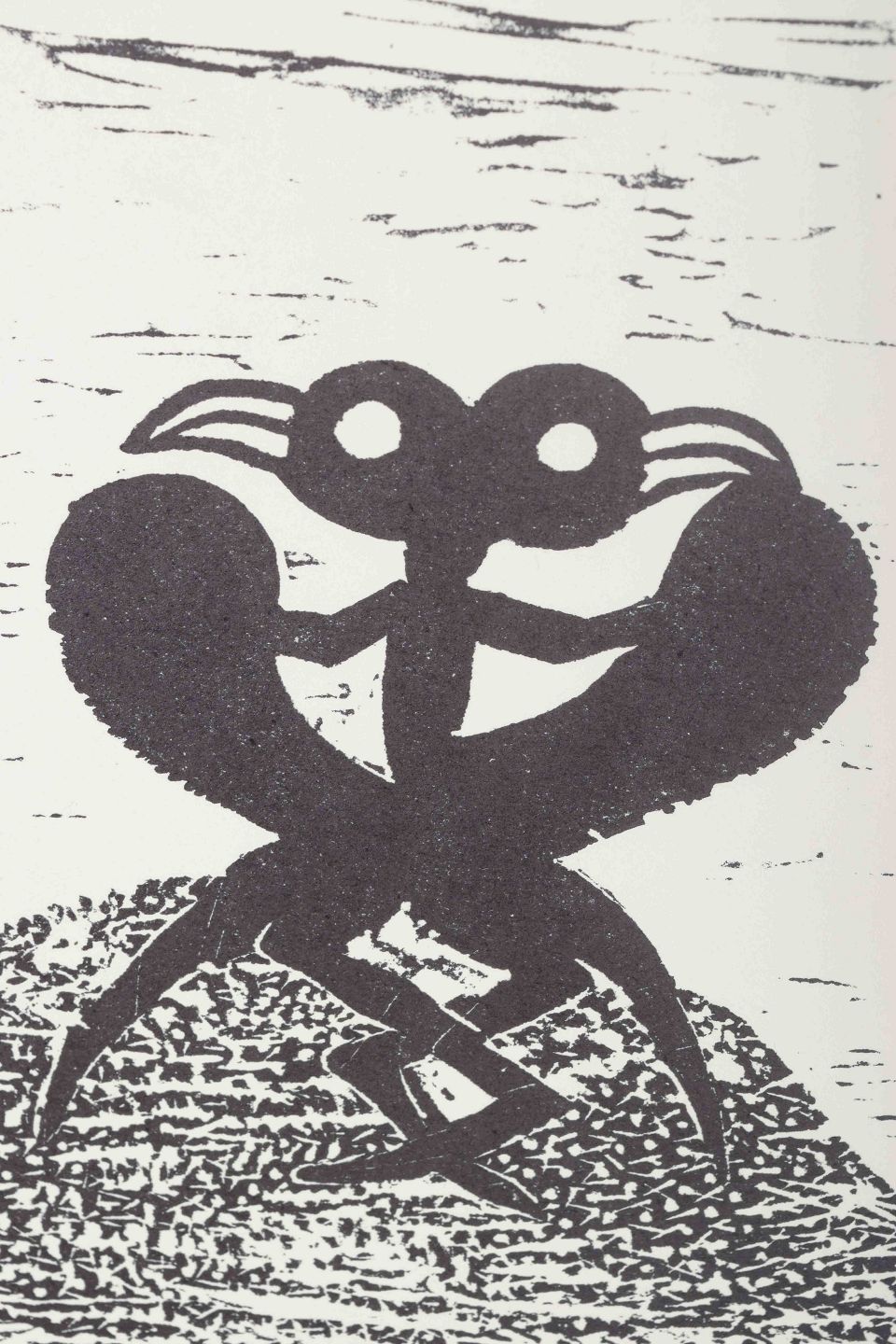Et poetisk og fabulerende motiv med surrealistiske figurer i bevægelse, hvor legende og drømmeagtige elementer danner en rytmisk og humoristisk komposition. Zielers karakteristiske billedsprog forener mytiske undertoner med en let og fabulerende fortælleform.