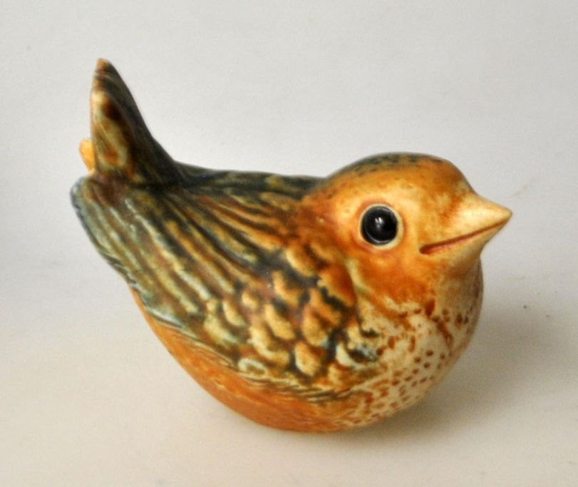 Carlsen, Poul Hauch (1921 - 2006) Danmark: En fugl. Porcelænsmasse. Koloreret. Signeret. L.: 8 cm. H.: 6,5 cm.