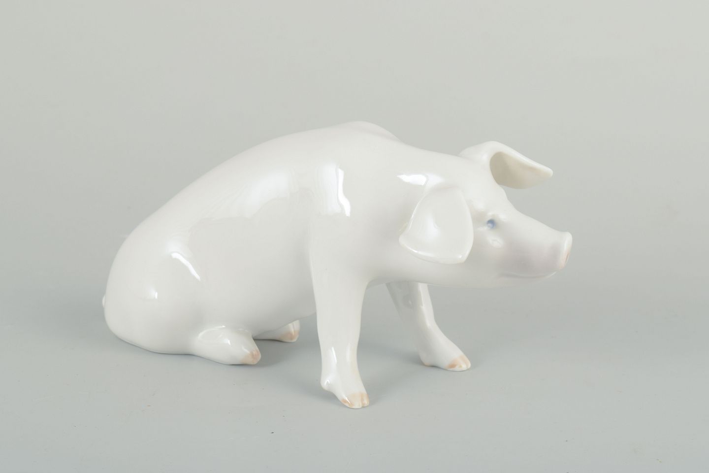 Naturalistisk figur af gris i hvidglaseret porcelæn.